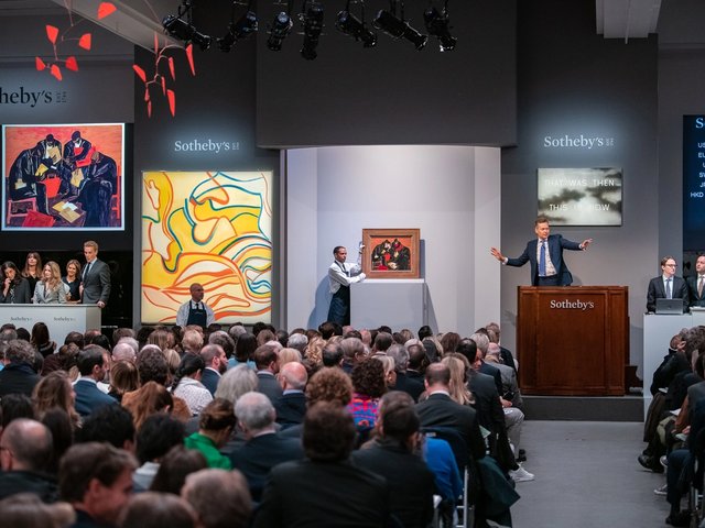 The third work to run away on the night was Peter Doig’s Grasshopper (1990). The painting sold on the telephone to Sotheby’s Asia-based specialist Jasmine Chen for £5.1m, £5.9m with fees (£2.8m-£3.5m).