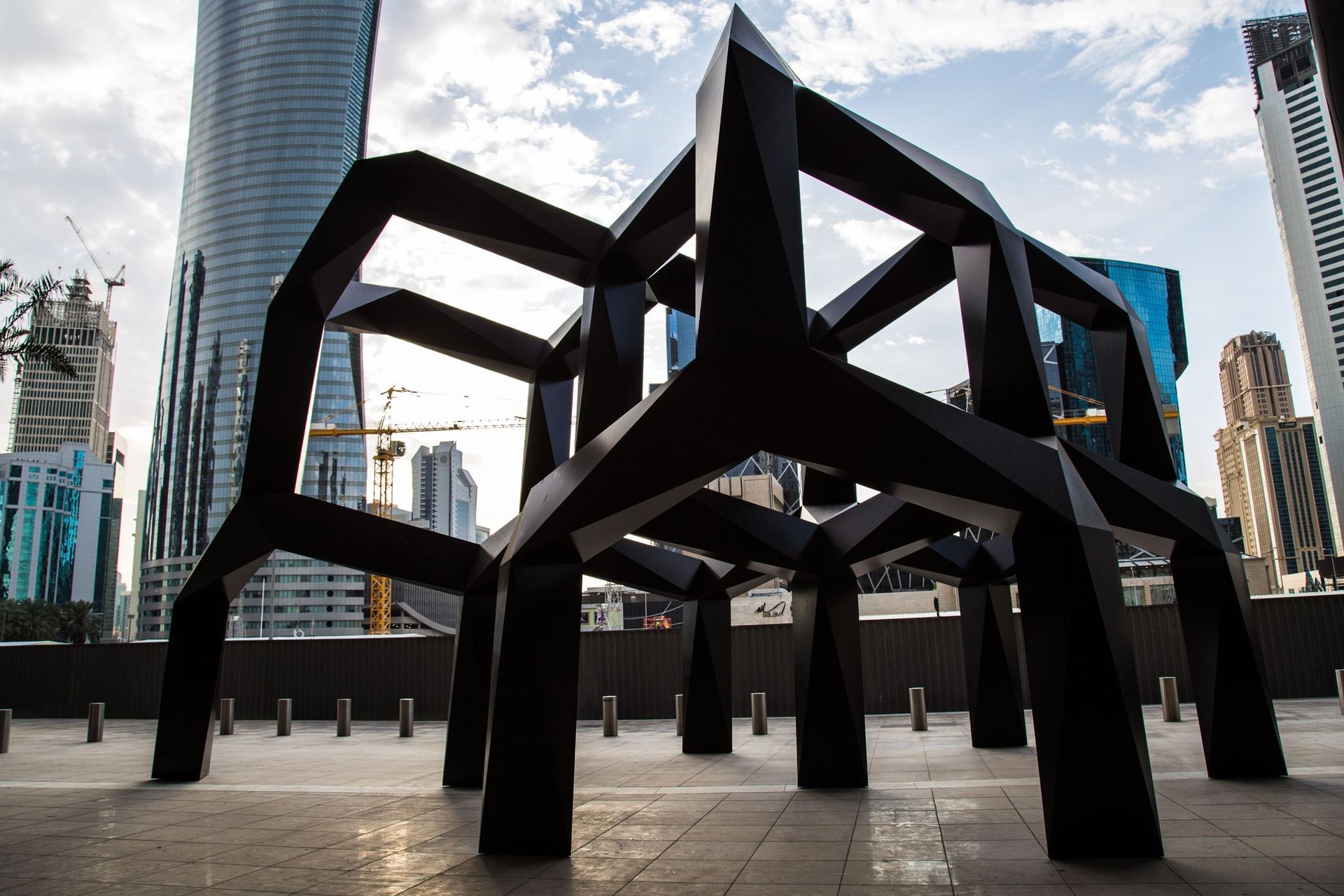 Other public art works in the programme include Smoke, a 24-foot tall aluminium sculpture (1967) by the late US artist Tony Smith on show at the Doha Exhibition and Convention Centre. A trio of sculptures by the Indian artist Subodh Gupta, Ghandi’s Three Monkeys, was unveiled at Katara Cultural Village in 2012. Richard Serra's East-West/West-East, made of four gargantuan steel plates that span more than a kilometre, is located in the Brouq nature reserve outside Doha. The budget for Qatar Museums public art programme is undisclosed.
