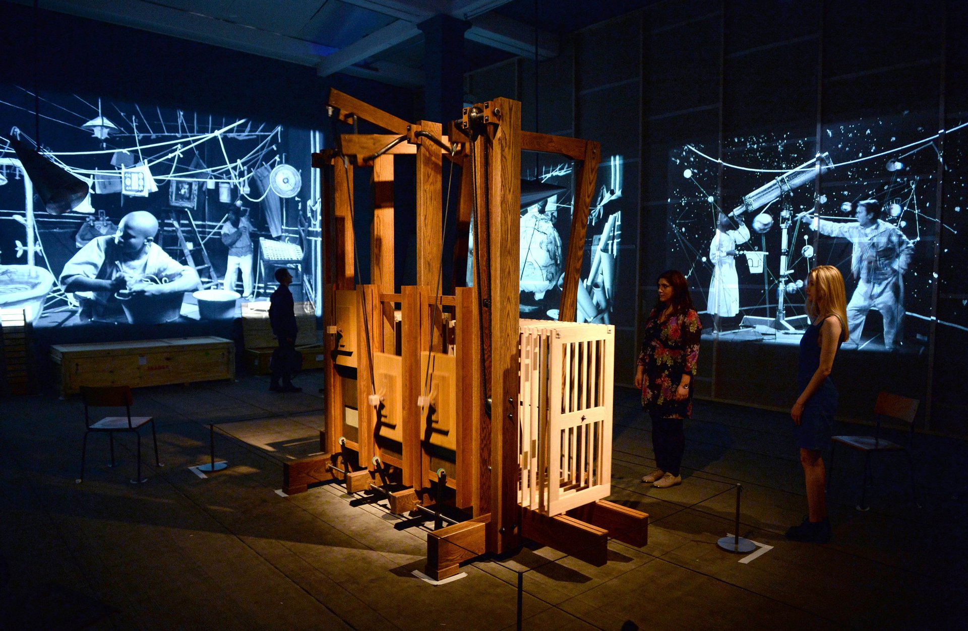 There’s more tracking of matters temporal in William Kentridge’s kaleidoscopic, immersive exploration into the expansion and contraction of time, both within the studio and also inside the artist’s head. The larger works—such as his room-filling, five-channel Refusal of Time (2012), with its cacophonous megaphones and symbolic breathing machine—form a visually striking, mind-boggling mélange of ideas. But I was most captivated by the more intimate, smaller works. Especially compelling are the procession of images and thoughts unfolding from Second-hand Reading (2013), a flip-book film made from drawing directly onto the pages of the Shorter Oxford English Dictionary; and Right into her Arms (2016), a magical miniature model theatre that uses projected images, drawings and props to channel the spirit of Dada and breathe cheeky life into even the most inanimate of objects.
