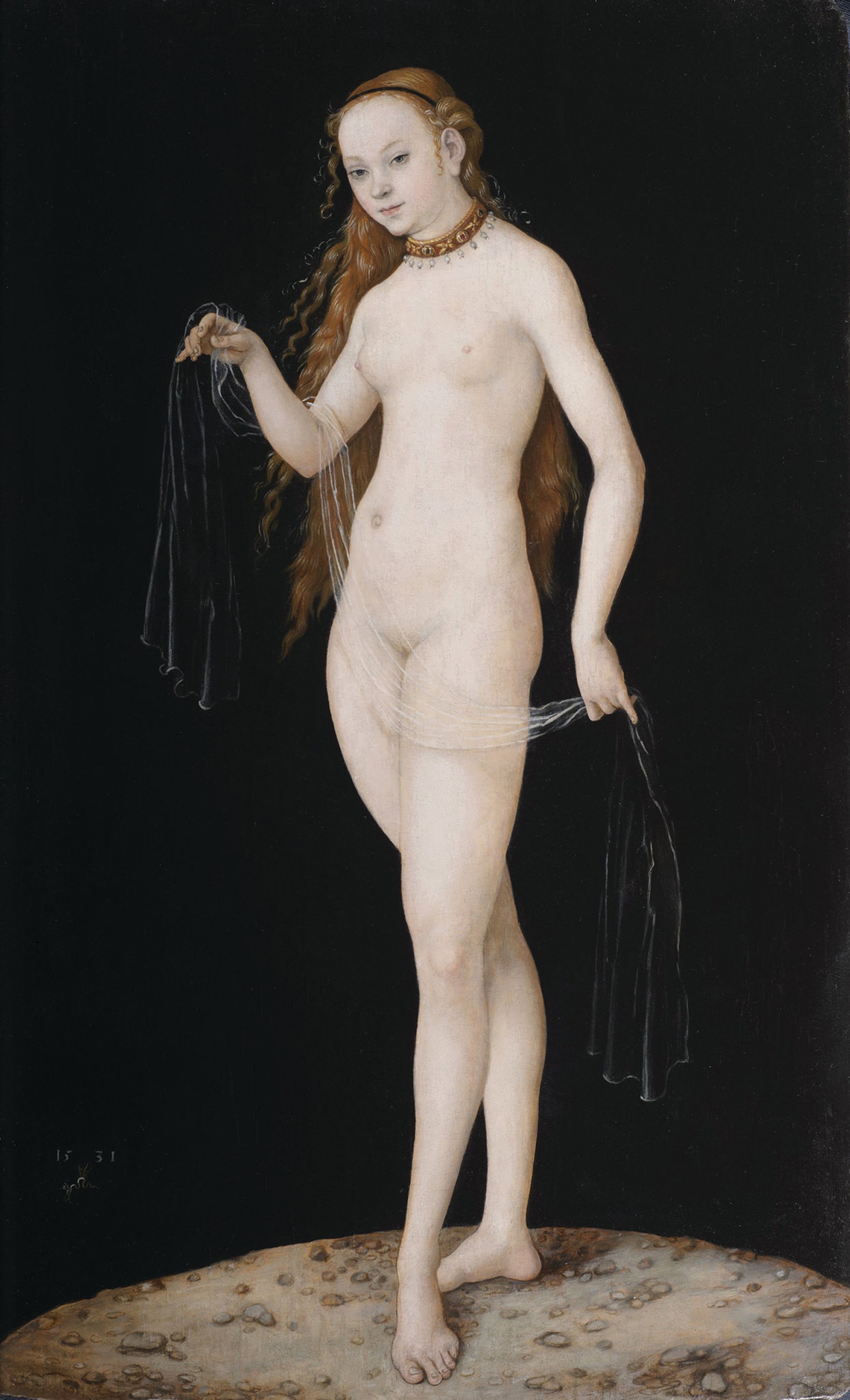 Most of the report is based on the examination by the Laboratoire de Recherche des Musées de France at the Louvre of the painting Venus with a Veil. The laboratory’s study is inconclusive, however. It states cautiously that all the materials are old, but it lists a series of discrepancies with the chemical components used by the painter. The goddess’s loose hair and eyelashes are described as “clumsily executed”, in comparison with two works by Cranach in the Louvre’s collection.