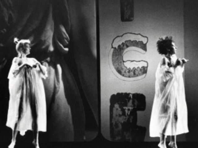 “I went to see Rauschenberg’s work—that was my introduction to Merce,” Atlas says. He went on to work for a decade as the videographer-in-residence for the dance company. One of the company’s stand-out productions for Atlas was Antic Meet (1958), a comic set of ten dances for which Rauschenberg designed costumes that included dresses made from parachutes and blocky sweaters with extra arms instead of neck holes.