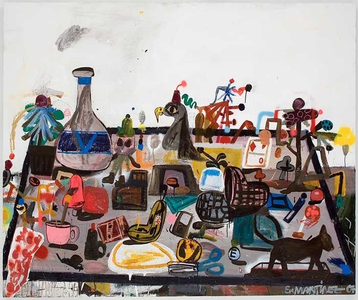 Miró’s concept of automatism as a means to experiment with materials and techniques, allowing the image to emerge from the process, anticipates the frontiers of serious painting today. Like Miró, the painters in this exhibition do not preconceive and depict shapes, but rather allow them to emerge from the process of creation. Describing his method of organising chance improvisation with stable structure, often combining linear looping and flat contoured shapes, Miró remarked, “The works must be conceived with fire in the soul but executed with clinical coolness.” He permits spills and blots to evoke pulsating forms. Miró’s paintings may look casual, but the disposition of elements is like in those of the Old Masters. He causes the eye to travel across the surface along axes and paths that visually link form to form. Miró challenged and threatened the Cubists: “I shall break their guitar.” And indeed, with his fearless experimentation, one might say that Miró certainly did.