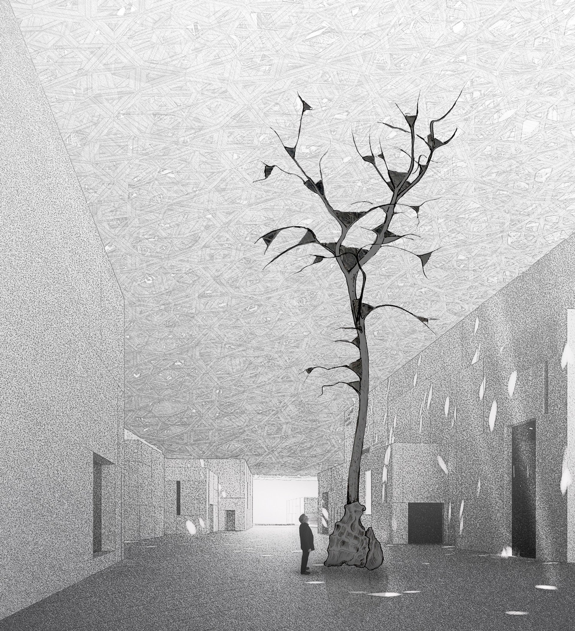 “The [building] will be illuminated by an enchanting, shifting ‘rain of light’, reminiscent of mashrabiya [wooden screens] and the beams of light that illuminate souks,” according to a statement on the Louvre Abu Dhabi website.