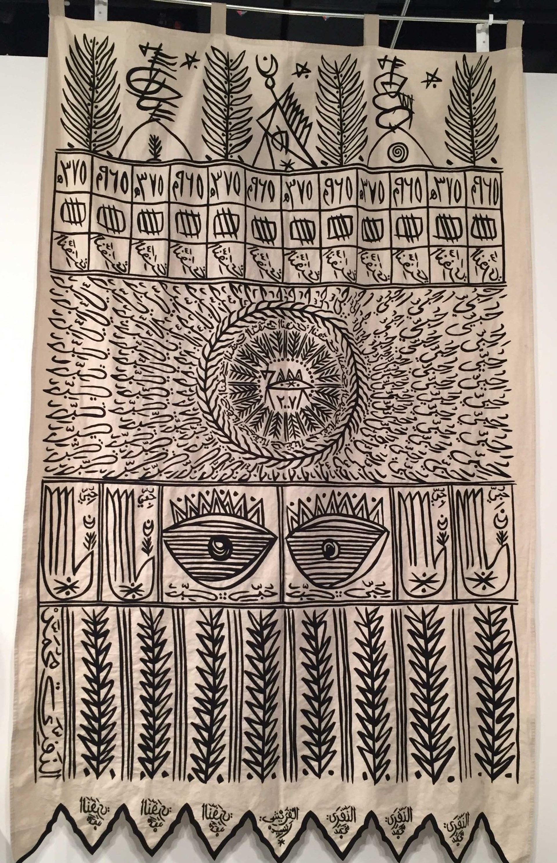 This series won the Jameel Prize for its author, the Algerian Sufi artist Rachid Koraïchi, whose strand of gentle Islam is at the opposite end from Isil-style fundamentalism. He is known in the UAE for having decorated a carriage on the Dubai elevated railway, so the banner and his ceramics were attracting a lot of attention.
