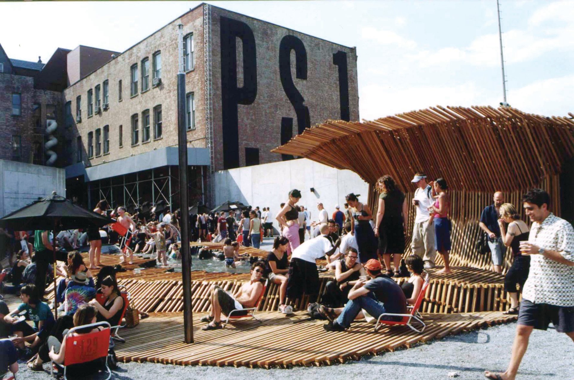 In 2000, SHoP was selected as the winner of the Young Architects Program, an annual competition organised by the Museum of Modern Art and the PS1 contemporary art centre that gives emerging architects the opportunity to build projects in the MoMA PS1 courtyard in Long Island City. Built in time for the museum’s Warm Up summer series of concerts and events, ShOP’s 12,000 sq. ft pavilion included a functional pool, water mists, and lounging and sunbathing areas.