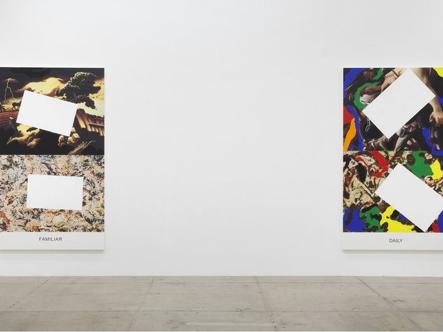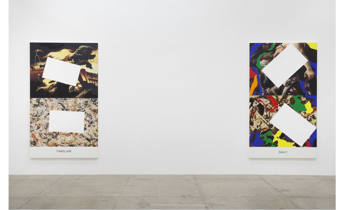 Twelve new pictures by Baldessari, on show at Marian Goodman gallery in New York (until 23 December), juxtapose details of paintings by Jackson Pollock with those of works by the Abstract Expressionist’s teacher, Thomas Hart Benton. The works are overlaid with Baldessari's own interventions: splotches of colour and cryptic words such as “ordinary” and “frequent” at the bottom of each canvas.
