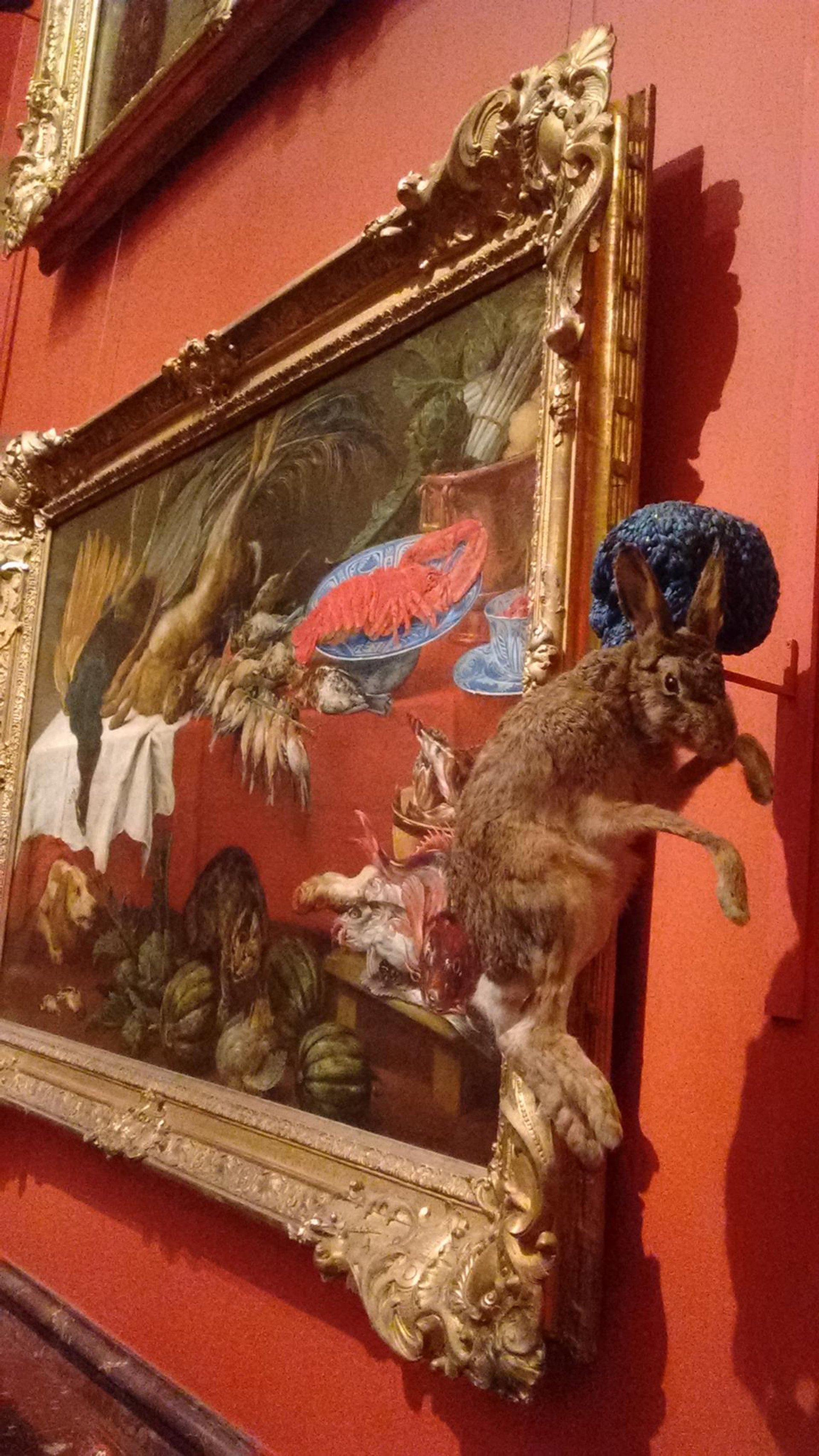 Jan Fabre: Knight of Despair/Warrior of Beauty (until 30 April 2017), which opened in October to a social media storm demanding that it be shut down, is part of the Hermitage 20/21 program to bring contemporary art to one of the world’s most famous classical museums. Over 200 of Fabre’s works, ranging from whimsical cat and carnival scenes to stuffed rabbits, birds, dogs and cats are dispersed among the Hermitage’s Flemish Old Masters in the Winter Palace and its Modern art quarters in the adjacent General Staff building on Palace Square.