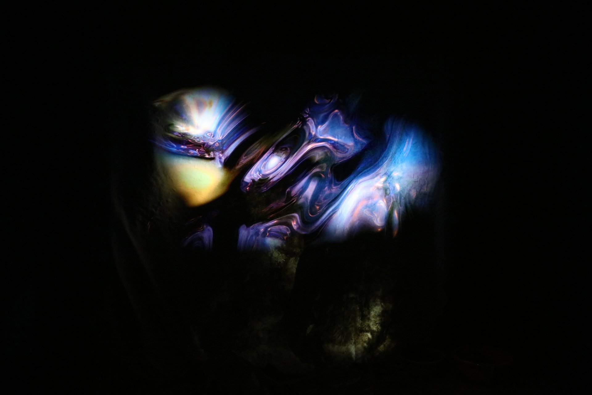 Incorporating film, sculpture and performance (at the opening the artist served visitors artichoke wine in a riff on traditional Asian tea ceremonies), the piece culminates with a virtual reality experience in a womb-like chamber where an Oculus Rift headset transports you to an abstract, multi-coloured landscape.