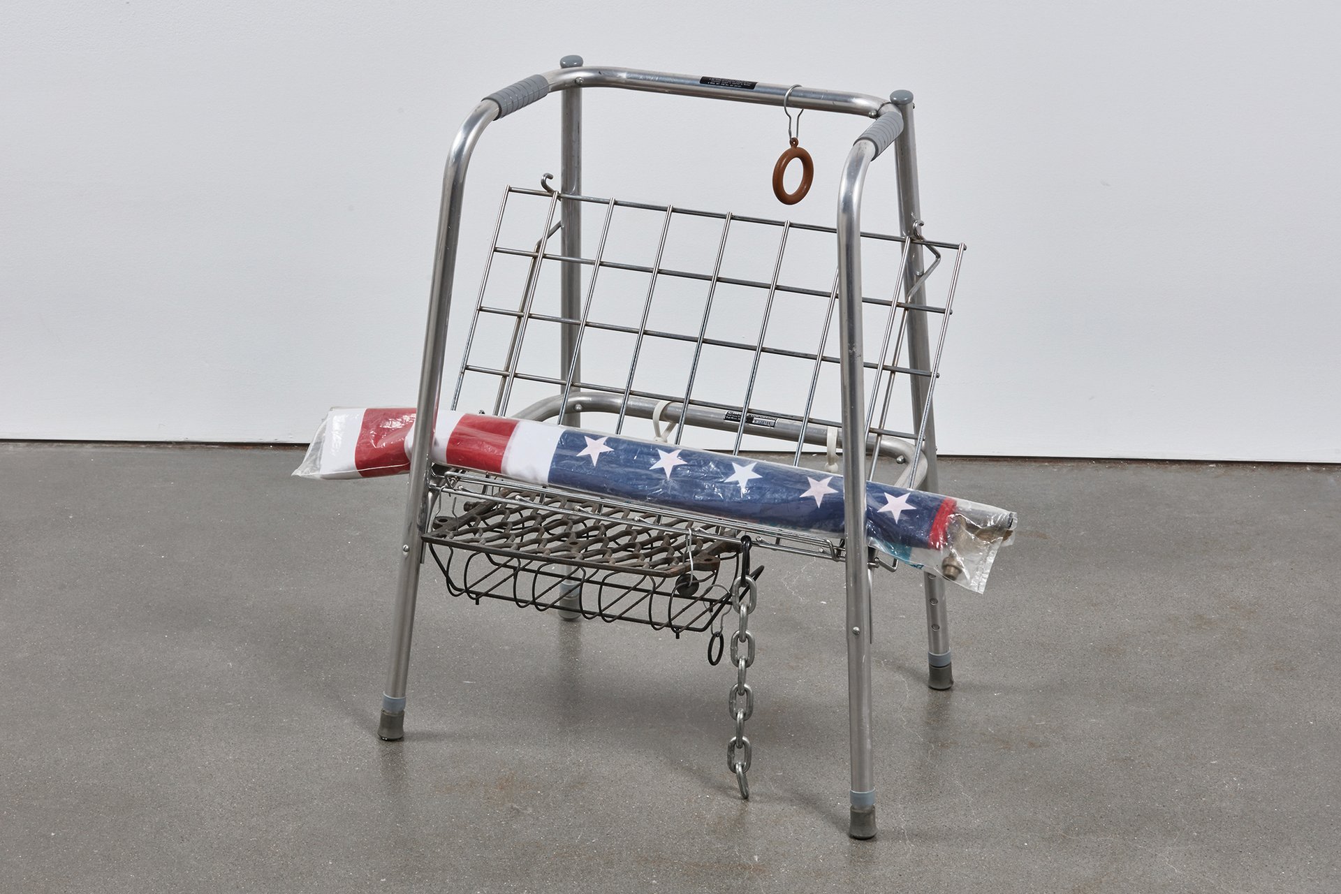 Examples abound in First Light. Take Cady Noland’s sculpture Objectification Process (1989), of a bagged American flag, rolled up and placed into an orthopaedic walker. The sculpture’s claims—its condemnation of nationalism, its irreverent denigration of a symbol too often valorised—are familiar. These are ideas worth visualising, but only if visualisation animates a dry discourse. By now, works such as Objectification Process are yet another rehearsal of the same tired discussion, justifiable only if our aim in visiting First Light is to participate in an intellectual debate whose locus is far outside the confines of the museum.