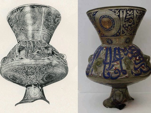 The Sultan Hassan mosque lamp was recognised from an image in the historical catalogue of the Museum of Islamic Art in Cairo. Similar lamps have sold for close to £2m at auction. A third missing lamp was recovered in London in 2015.