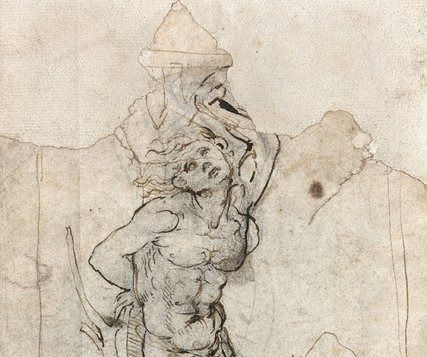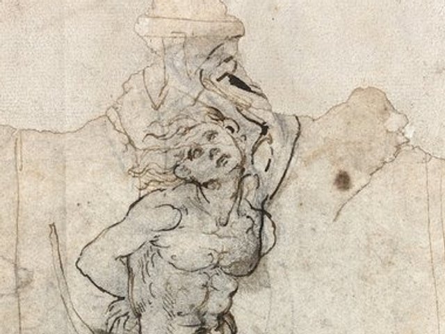 The work depicts Saint Sebastian bound to a tree on one side, and optical studies in light and shadow with text by the Old Master on the reverse. The artist referred to eight drawings of the saint in his tome of drawings, texts and scientific studies, the Codex Atlanticus (1478-1519) and this sheet is believed to be among them.