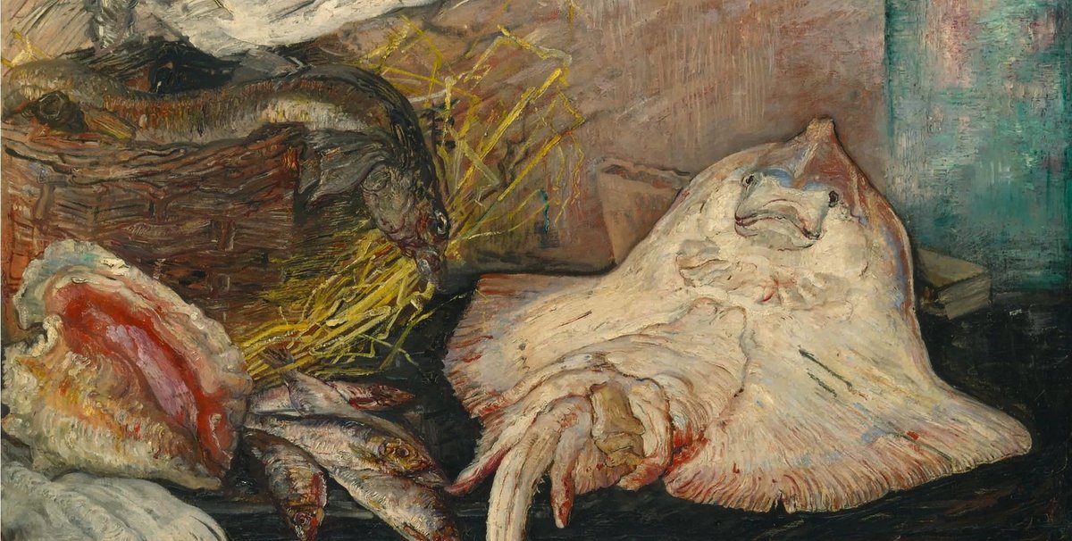 But whatever Ensor is painting, the atmosphere crackles with a very contemporary ambiguity where there is a tenderness in his caricature, a nihilism in his energy and where no easy interpretation is offered. Nowhere is this more the case than in the obscenely fleshy form of a giant ray, which, in a huge and deeply disconcerting painting, shakes up all traditions of Flemish still life as it lies splayed alongside the positively pornographic gaping form of a seashell.
