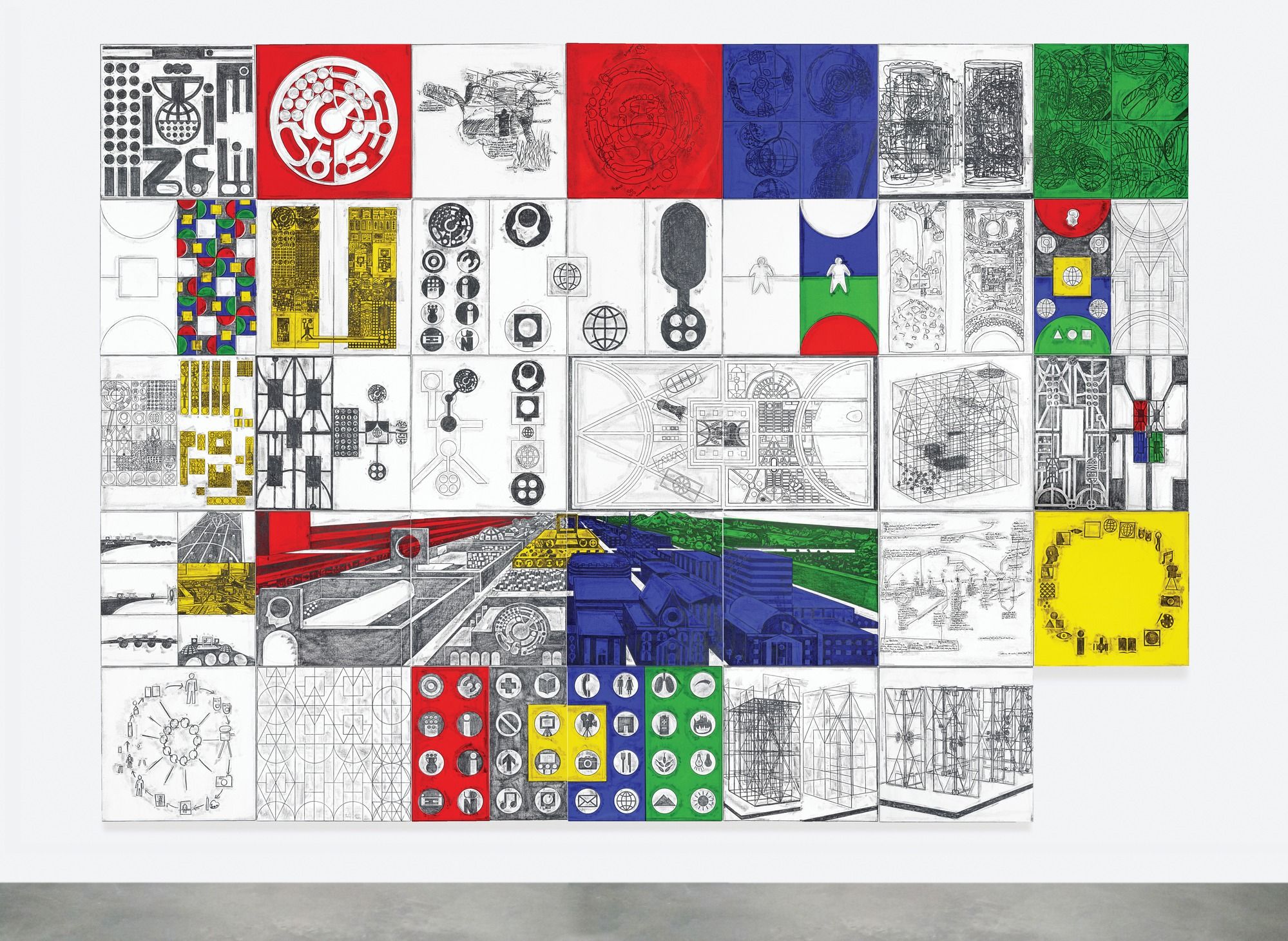 The final immersion in his filmed performance was rendered all the more gripping by the artist in front of us interacting with his video-ed self, and seeming to slip into a parallel state of hypnosis before our eyes. All in all, a most stimulating way to spend a rainy Sunday afternoon, with Mullican signing off by reminding us that “the mind is a muscle”—having given all of ours a very comprehensive workout.