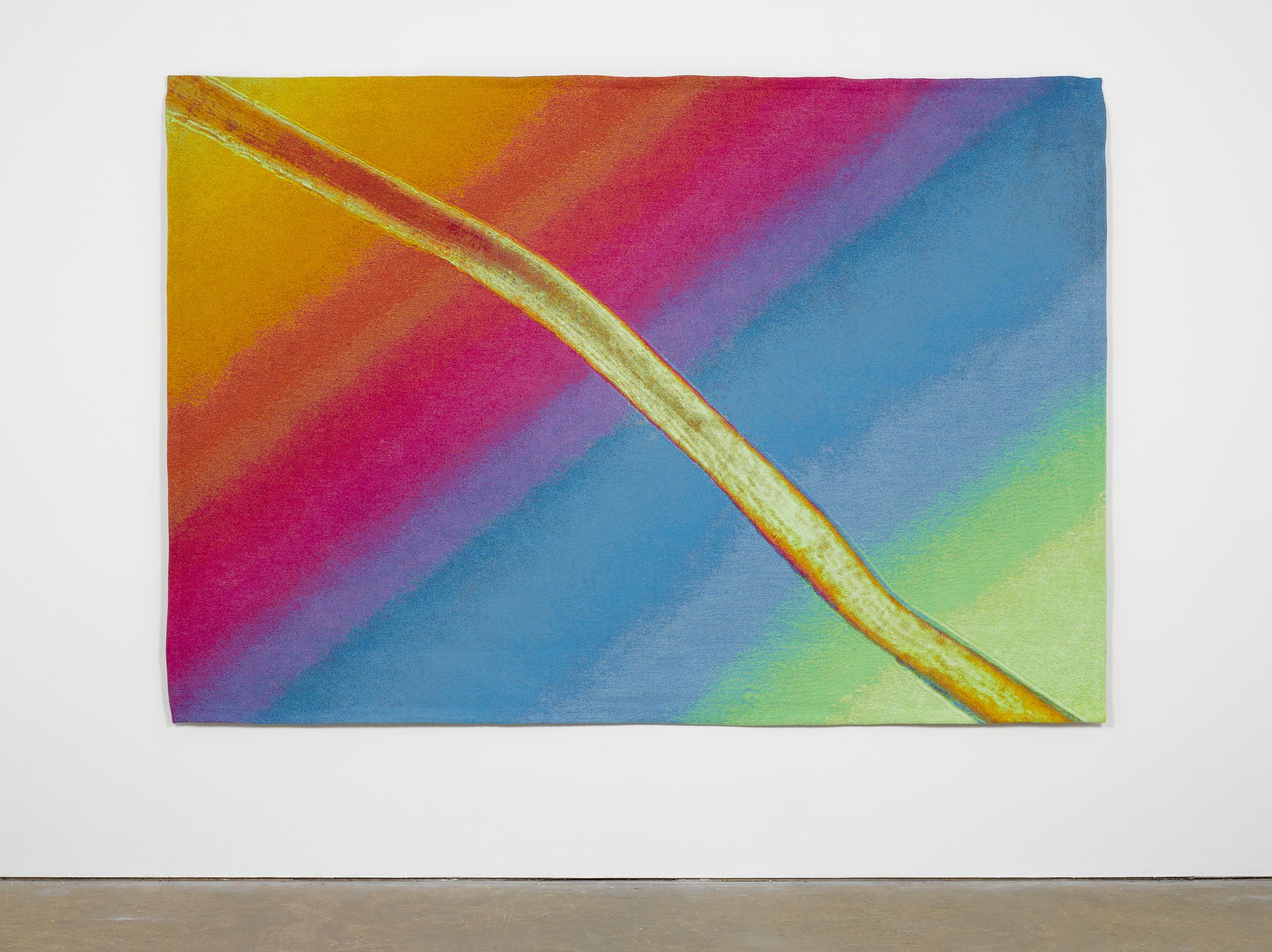 Among the works is a woven tapestry with a blown-up image of the scientific samples of the debris, left by Sigmund Freud’s patients and family members among others, on the Persian rug covering his famous couch in his north London home (now the Freud Museum). The piece—titled Trace Fiber from Freud’s Couch under crossed polars with Quartz wedge compensator (#3) (2015)—is based on DNA and other particles collected by a police forensic team.