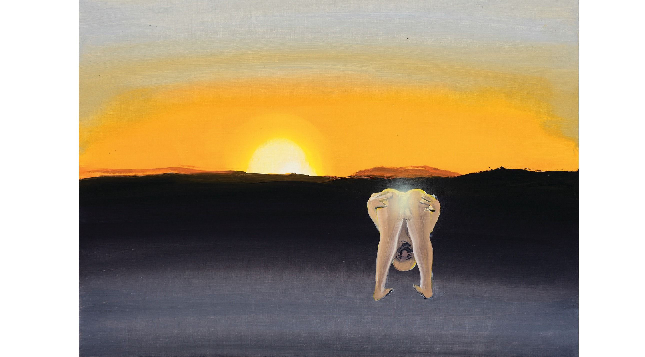 Anyone desperate to find hope and humour in a country run by little men with big egos would do well to look at the art of Tehran-born, Los Angeles-based artist Tala Madani. Through her paintings, and also short stop-motion animations, she has a history of exposing the absurdities of a hyper-masculine and at times savagely phallic culture. Her speciality is depicting—with an economy of brush strokes—sad-sack, naked, misshapen, balding, middle-aged men who excrete, secrete and play with themselves like strange, overgrown babies.