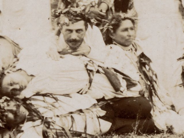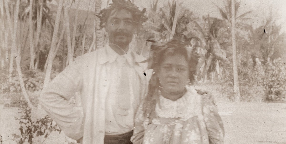 Identified by The Art Newspaper as Joseph Gouzer (born 1854, died 1901), he appears in the Blau album as “Docteur G”, standing intimately close to a Tahitian woman, Faona. His descendants have confirmed he is the man in the photo.