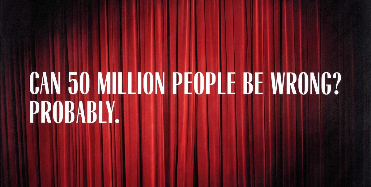 “Can 50 million people be wrong? Probably” is the strap line for one of Bret Easton Ellis and Alex Israel’s new paintings that went on show last week at Larry Gagosian’s smallest London gallery (until 18 March).