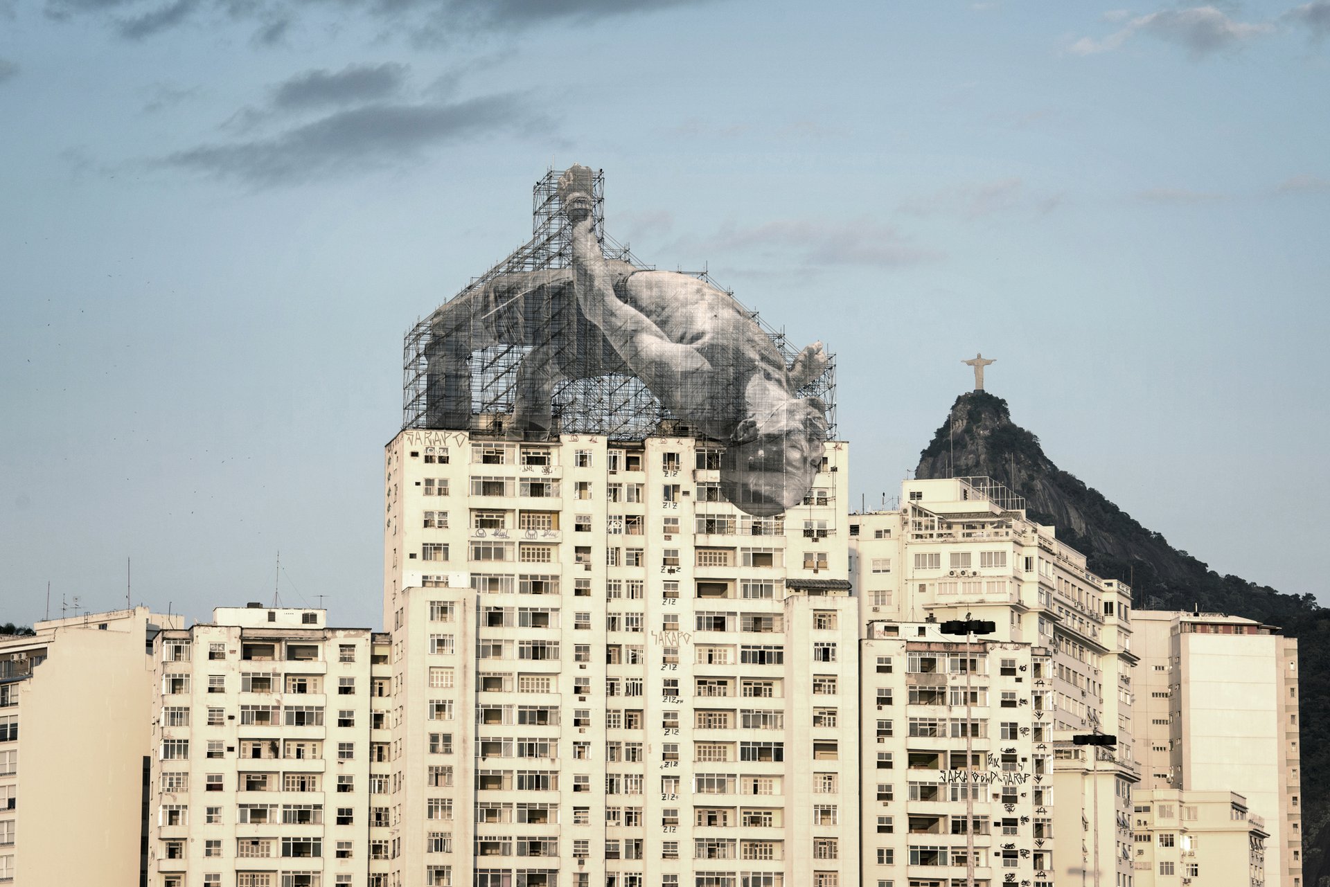 The show will feature video and photographic documentation of JR’s most famous public works such as Women Are Heroes (2008), for which he pasted portraits of women from conflict zones on to street walls; Rio de Janeiro Olympic Games (2016), where the artist created giant installations of Olympic athletes leaping over buildings and diving into the sea; and The Louvre, Paris (2016), for which he covered one of the glass sides of the Louvre's pyramid with a photograph, giving the illusion that it had temporarily disappeared.