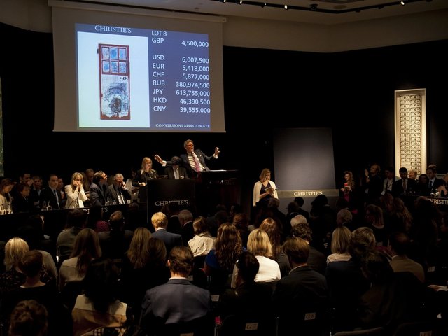 Zero Group member Günther Uecker also saw a record for a nail-studded diptych that Christie’s originally catalogued as two lots. A last-minute request from the artist meant the work was sold as one piece (as Uecker conceived it), fetching £2.2m (£2.6m with fees; est £1m-£1.5m). The lot was also subject to a late third-party guarantee.