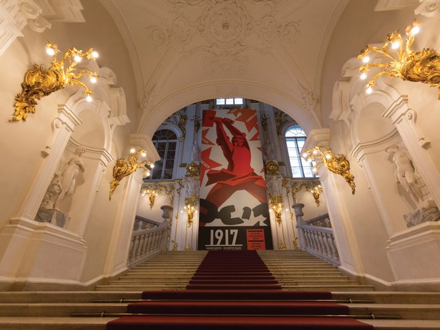 Finally, the institution plans a one-off event on 25 October. “We will stage a mystery play on Palace Square,” the museum’s director, Mikhail Piotrovsky, said in a news conference in February. “There will be lighting to make the Winter Palace and the General Staff Building red.”