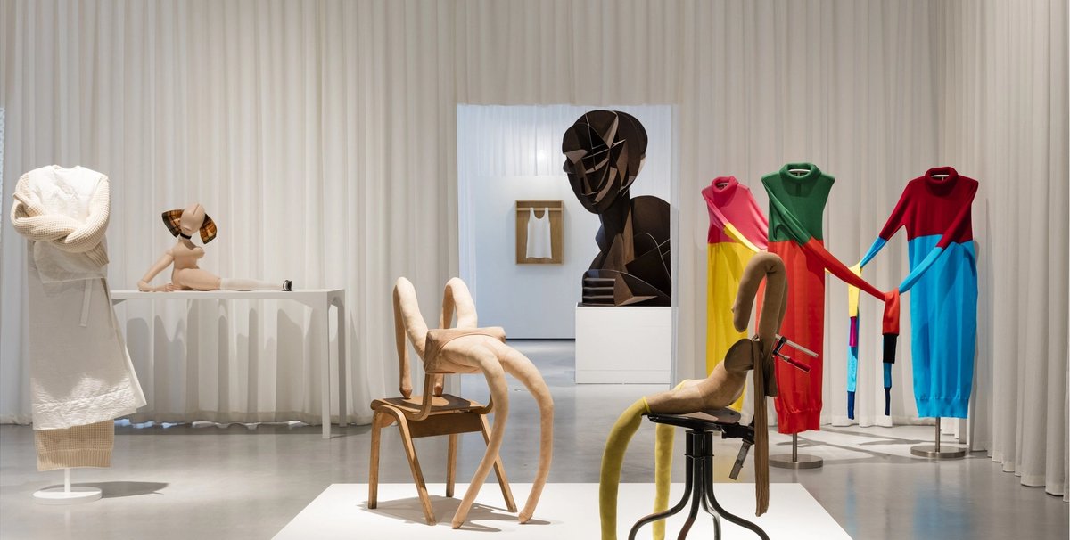 Throughout and where possible, in homage to Hepworth’s desire that visitors experience her sculpture with their hands as well as their eyes, visitors of all ages are encouraged to physically engage with many of the exhibits. We are invited to sit on the classic chairs by Eileen Gray, Gerrit Rietveld and Gaetano Pesce and to get up close and personal with a forest of giant dangling JW Anderson jumpers. All in all, this is a generously inclusive boundary-busting gathering that will be a pleasure for everyone to attend.