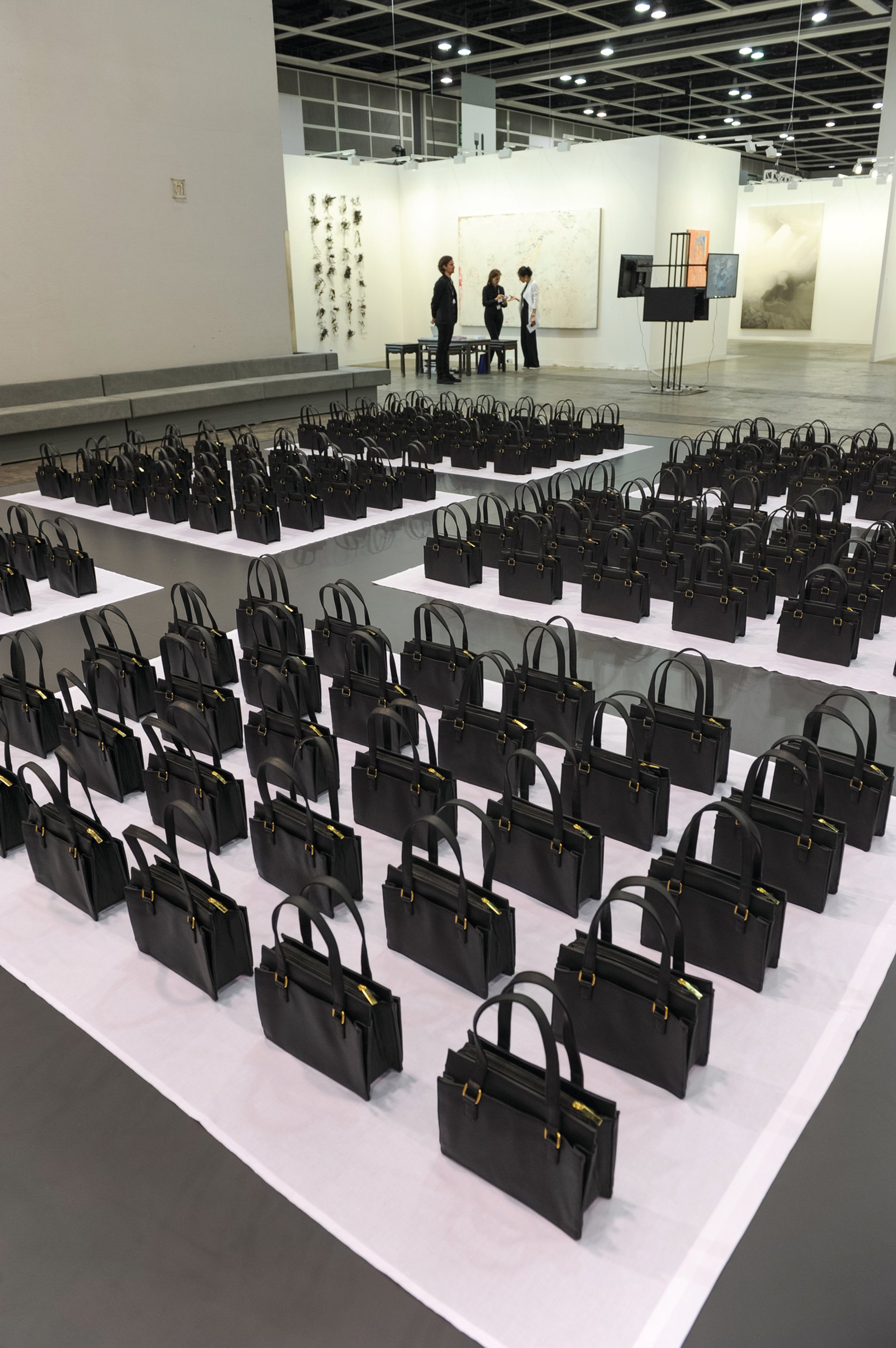 “Pio’s practice often looks at appropriation; the way that things lifted from their context can be altered. In this case, he’s taken Margaret Thatcher’s Asprey handbag and created 180 replicas in the Philippines in immaculate detail. They’re lined up as if they’re being sold as counterfeit goods on the streets of a city like Hong Kong. I love the conversation between Communist leaders lying in state [Shen Shaomin’s Encounters work nearby, Summit (2009-10)] and the mausoleum effect of the ubiquitous handbag repeated.”