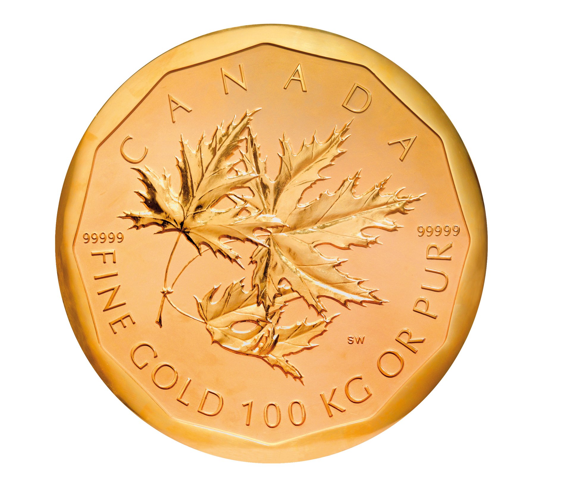 The coin, which police said was protected by bulletproof glass, carries a nominal value of C$1m and was produced by the Royal Canadian Mint in 2007. Known as the “Big Maple Leaf” and made of the purest bullion, only five have so far been produced, according to the mint’s website. One side features a maple leaf, the other a portrait of Queen Elizabeth II.
