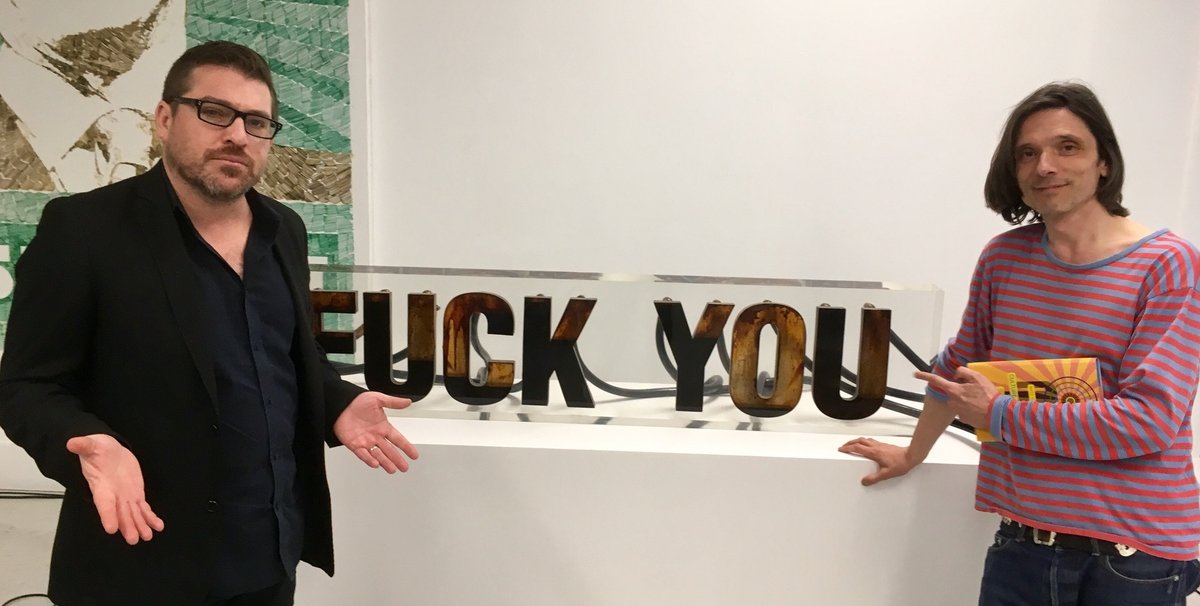 It was also appreciated that the in-conversation took place next to the Russian artist and provocateur Andrei Molodkin’s work that pumps crude oil through a container spelling out the words “FUCK YOU”, while across the room was Santiago Sierra’s sculpture consisting simply of the giant word “NO”. Enough said.