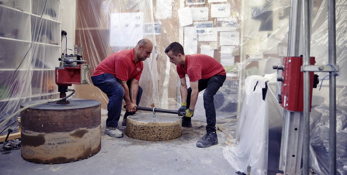 The London-based designer Paul Cocksedge dug deep to make the furniture in his current project, Excavation: Evicted, on view at the Fondazione Luigi Rovati in Milan until 9 April (to coincide with Milan Design Week) and presented by the New York gallery Friedman Benda. At the beginning of last year, the designer was served with an eviction notice for his studio in the London borough of Hackney, and decided to explore the space he has occupied for the past 12 years—and take some of it with him—by mining the studio’s floor for material for his designs. Cocksedge scanned the studio’s foundation and then began his excavation. “The resulting findings epitomise London’s multi-layered history, with the initial concrete hiding Victorian bricks left over from the building’s former life as a stable,” the designer explains in a statement.