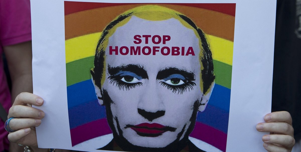 No, this is not an April Fools joke. Russia’s ministry justice has banned an image of Vladimir Putin in clownish make-up that hints at the “allegedly non-standard sexual orientation of the Russian president” as “extremist” material. A rash of recently passed Internet extremism laws has allowed the government to silence critics by shutting down their websites and sentencing anyone who shares or even “likes” banned posts to prison. The image was one of many that became popular at protests against the country’s anti-gay laws in 2013. It was posted by man named A. V. Tsvetkov in the social media site Vkontakte, which led to a court case last year that prohibited that image and many others. Tsvetkov was not found criminally liable, but he was ordered to get compulsory psychiatric care and had his Vkontakte account deleted. When asked about Putin’s reaction to the image, a Kremlin spokesman said that: “As a person, he might be stung, but as president he is quite resilient to these vulgarities and has learned to brush them off long ago.” The gay clown poster is now number 4,071 on a list of 4,074 entries.