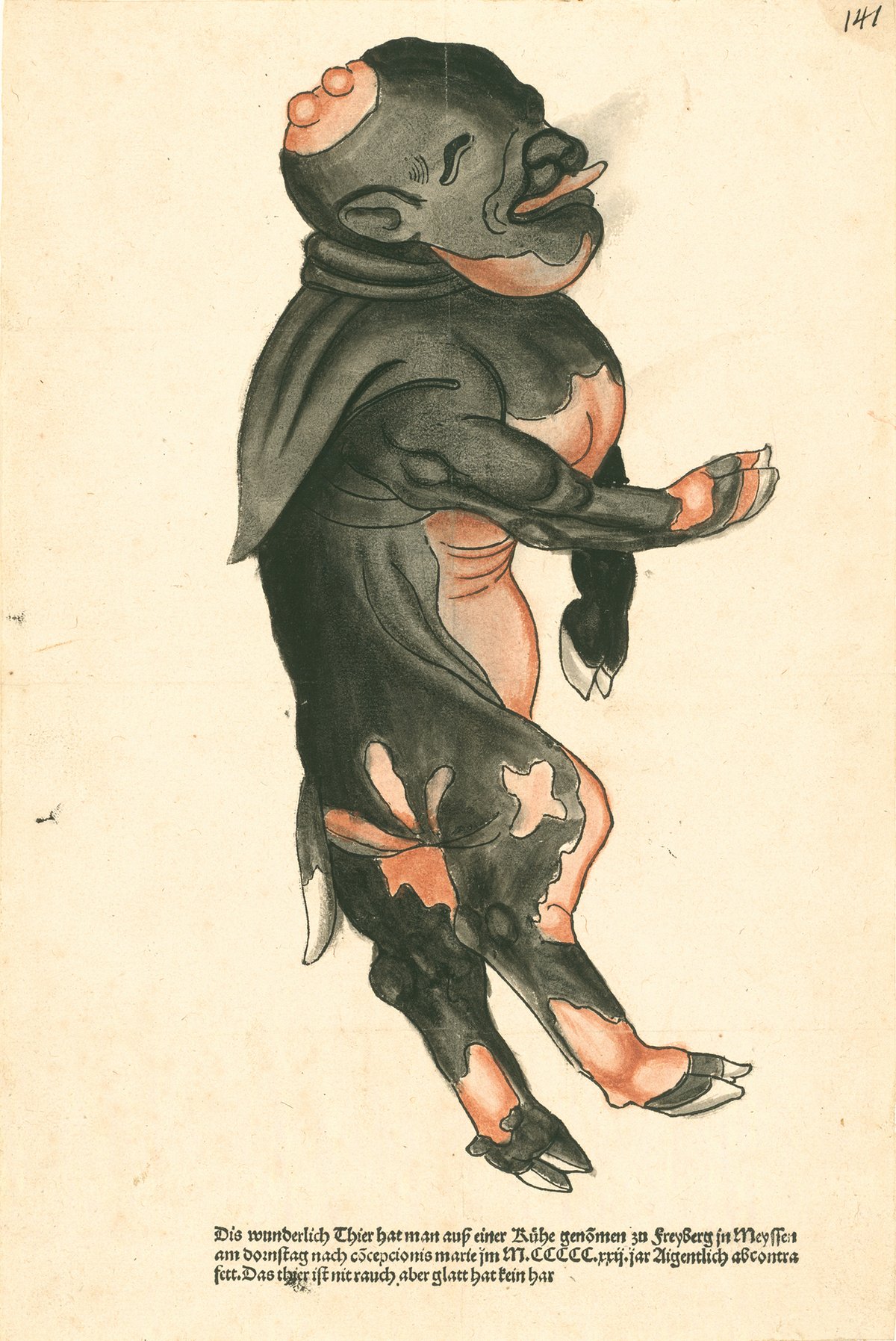 Caricatures and polemical images predominate among images relating to the Reformation, all—with one exception of an anti-Lutheran flysheet—supporting the Protestant cause. A particular delight is the stunningly coloured illustration of the “monk calf” of 1522: a deformed calf apparently born with a tonsure with two lumps in it and a large roll of skin on its back. First exploited by Martin Luther’s opponents as a sign of God’s displeasure at his heresy, the image became a powerful and extremely popular Protestant image once Luther had reinterpreted it as an image of a hideous, deformed monk. Other categories include flysheets devoted to different crafts and trades, illustrated moral tales, representations of moralising fables and proverbs, and crimes and law enforcement. Five sheets depicting various crafts and trades (two with 48 images, three with 24) are particularly intriguing. The Gotha examples appear to be unique but their purpose is not known, though the fact that one sheet of 24 has three further images pasted onto it might perhaps indicate they were designed to be cut up and collected.