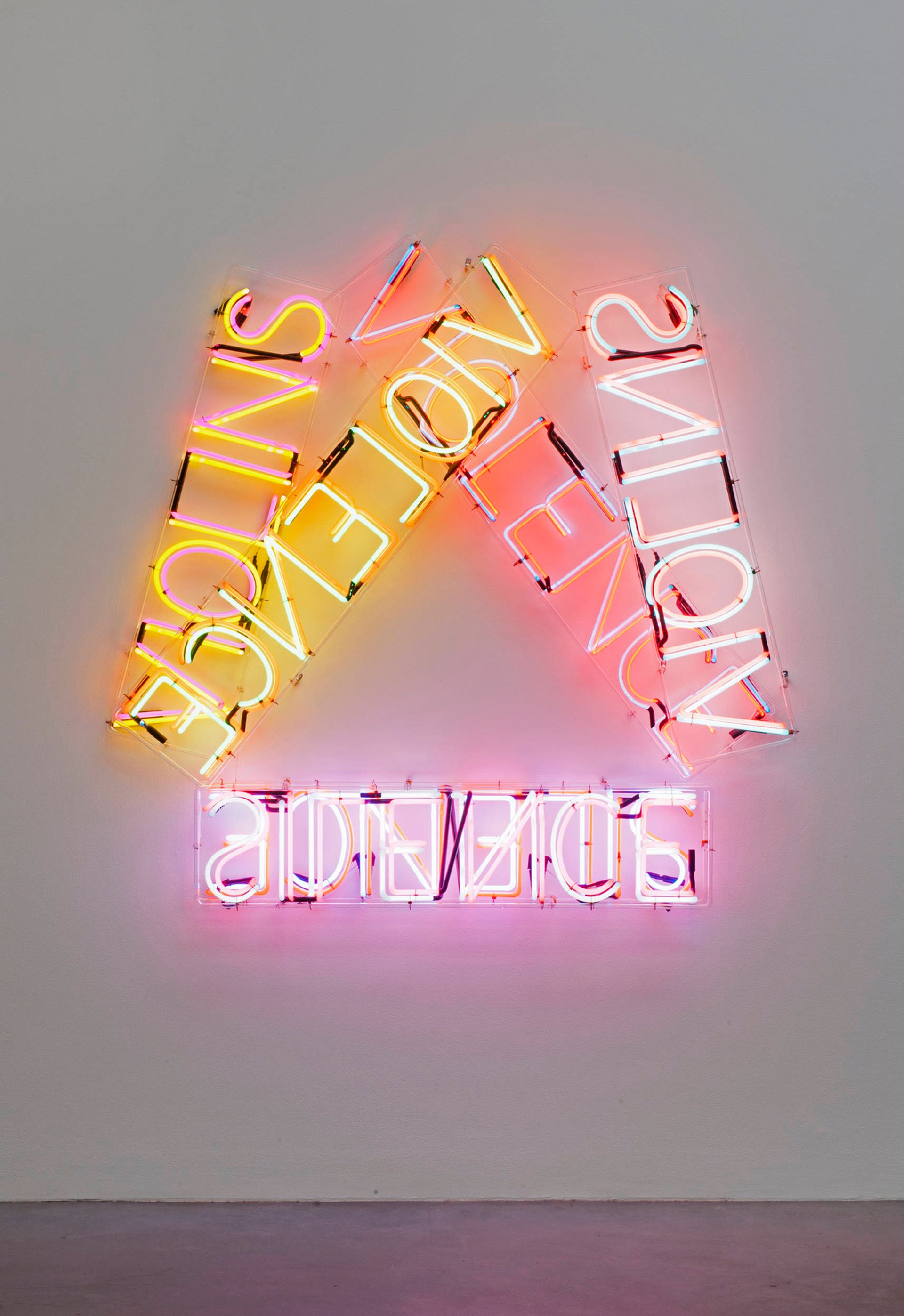 The Artist Rooms Nauman show will include the neon sculptures VIOLINS VIOLENCE SILENCE (1981-2) and La Brea/Art Tips/Rat Spit/Tar Pits (1972). The videos Raw Material with Continuous Shift-MMMM (1991) and Raw Material Washing Hands (1996) will also go on show alongside the vast sculptural installation Enforced Perspective: Allegory and Symbolism (1975).