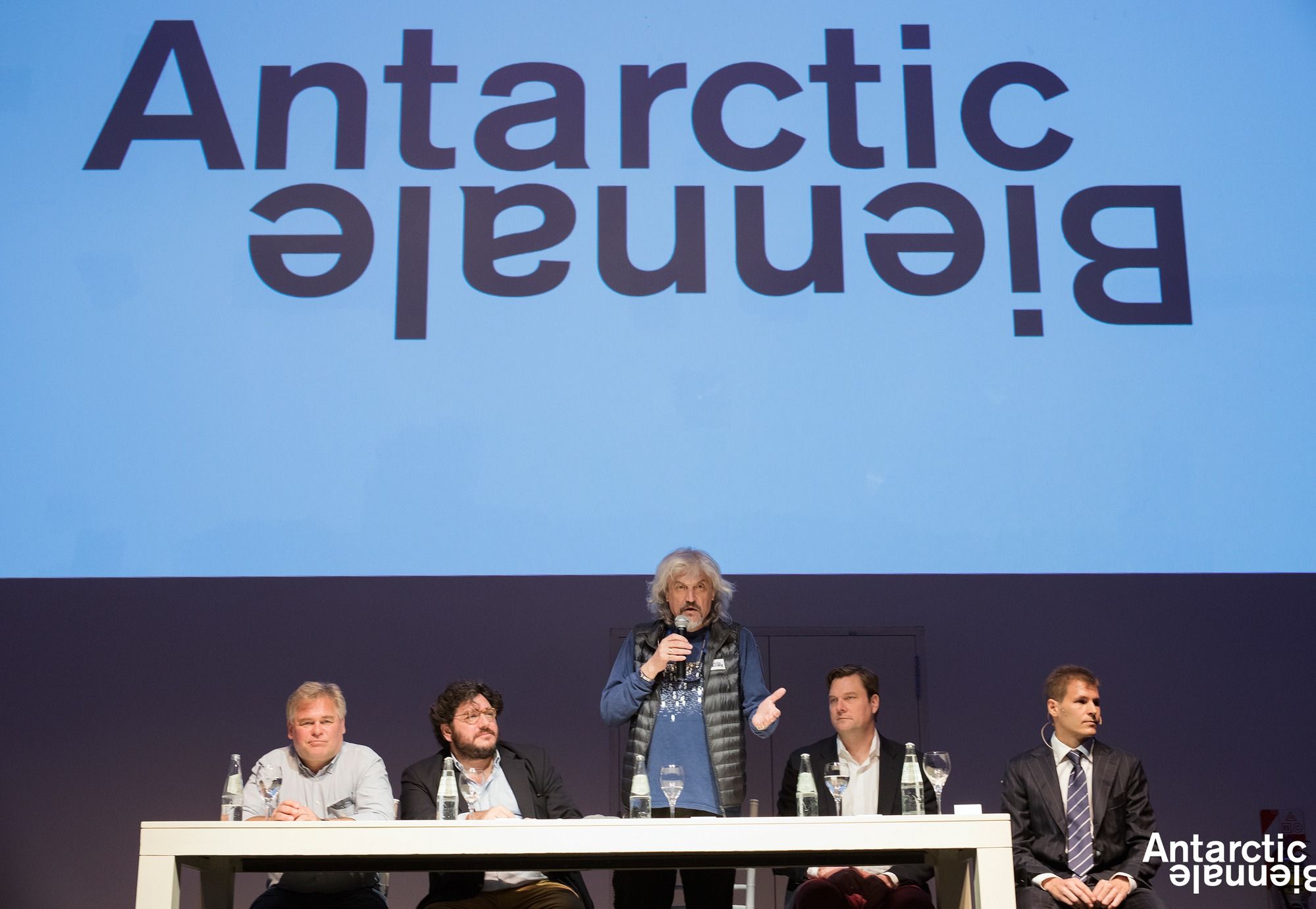 Typical barren beach; Joaquin Fargas putting reflective silver sheets over the rocks to try and help stop global warming whilst the young architect Gustav Düsing was busy with his white cotton tent, sprayed with water to freeze rock-solid like salt or Greek marble drapes. Revelatory that back in Berlin he was able to freeze it successfully at night whilst here it is just not cold enough, and if you can’t freeze a sheet in the Antarctic where can you? He is not allowed to stay on shore through the night when it might work. Indeed the first actual sun rays touching upon myself since standing outside Buenos Aires airport. Rather effective photo exhibition using special plastic display boxes on tripods mounted in the water and along the beach, the horizon line in a photograph next to actual horizon on the sea.