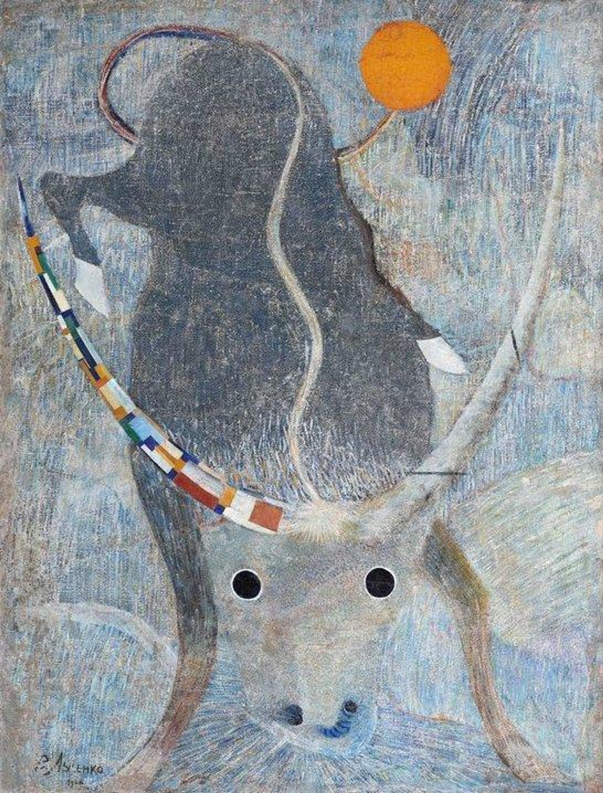 A centerpiece of the collection, and de facto mascot for the museum, is the painting The Bull (also known as Fascism is Advancing) by the obscure avant-garde artist Vladimir Lysenko (alternatively called Vasily or Yevgeny). During an inspection of the museum, officials deemed the work to be anti-Soviet and ordered it be taken down. Savitsky obeyed—but put it back up as soon as they left. It is being shown outside of Nukus for the first time, along with more than 250 works from the 100,000-strong collection of fine art, decorative objects and archaeological artefacts that are rarely loaned by the museum.