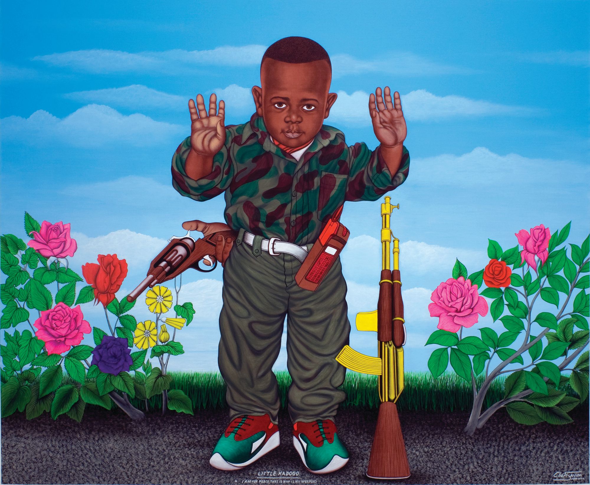 The first focus, called The Insiders, is a selection of works on loan from the Geneva-based collection of Jean Pigozzi, who entered into “unknown territory” when he began buying art directly from artists in Sub-Saharan Africa with the help of the art advisor André Magnin in 1989, says Suzanne Pagé, the foundation’s artistic director and the show’s head organiser. The show looks primarily at work made between then and 2009 and includes the Zimbabwean photographer Kudzanai Chiurai and the Congolese painter Chéri Samba.