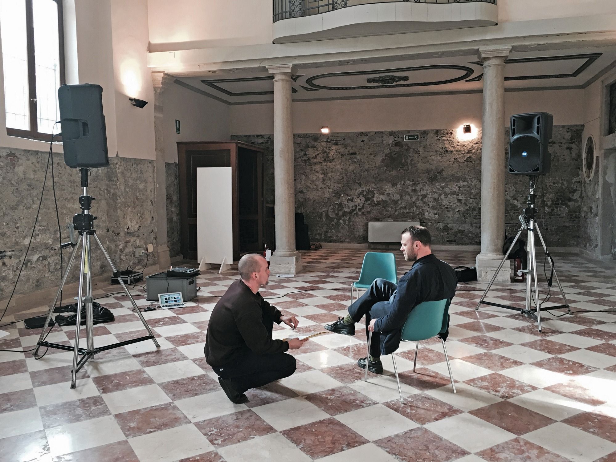 Our second recce in Venice and a chance to meet with the extended team, including James’s technical collaborator, Matt Fitts. We order in sound equipment and test the acoustics in the church—it’s our only chance to experiment before we return to Venice to install the exhibition, so it’s vital that we leave confident that the space can hold James’s ambitions for the sound installation he’s developing.
