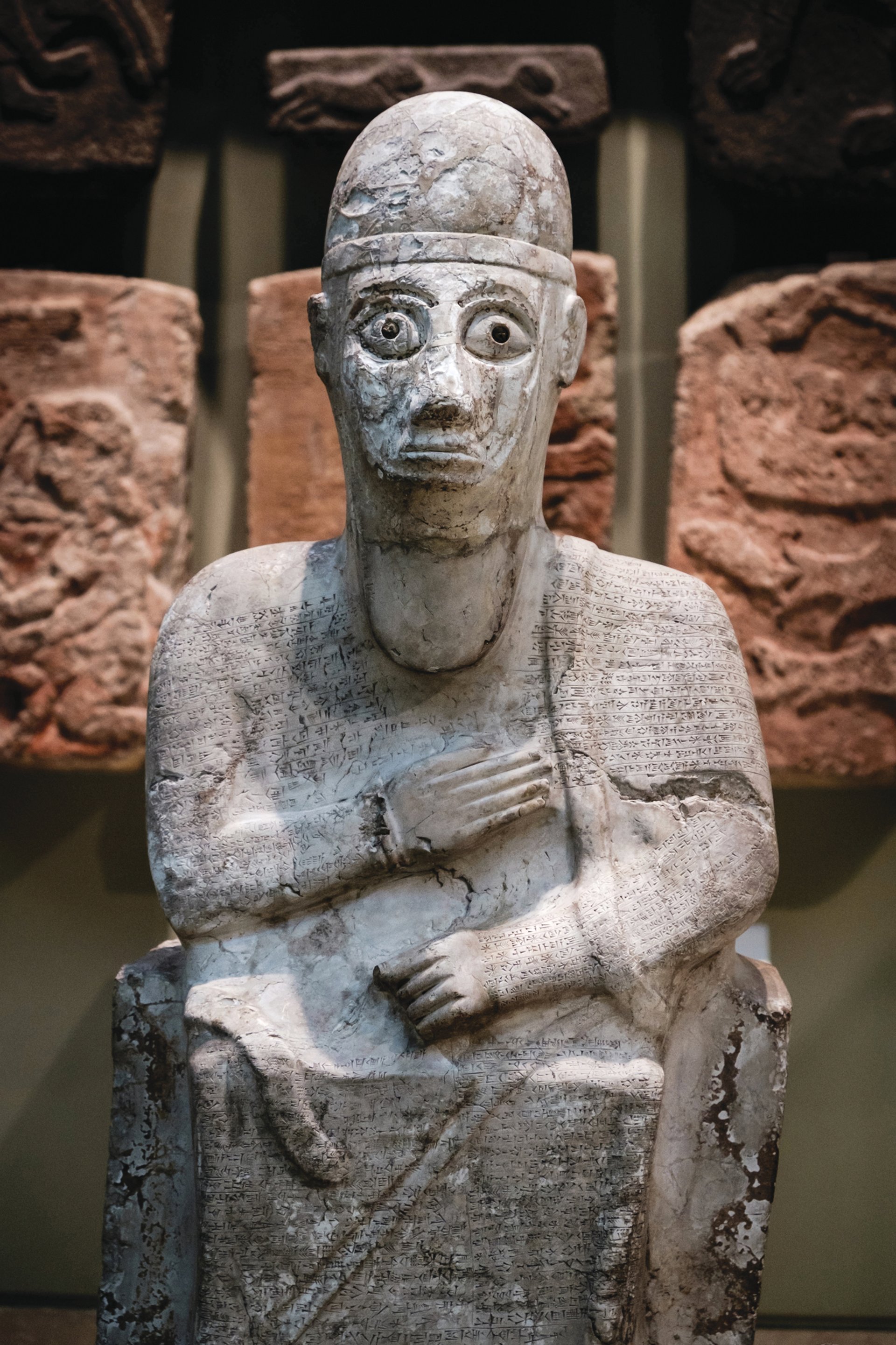 The statue of Idrimi, excavated at Alalakh in 1939 by the British archaeologist Leonard Woolley, is one of the gems in the BM’s collection. It features a 104-line autobiography of the king that recounts his days as a political exile in the land of Canaan as well as his later military campaigns. Scholars consider the text to be one of the most significant cuneiform discoveries. “You don’t find political autobiographies of real people in the ancient Middle East, certainly not in this period,” says James Fraser, a project curator in the museum’s Middle East department. “A remarkable number of stories can be told through Idrimi’s life story.”