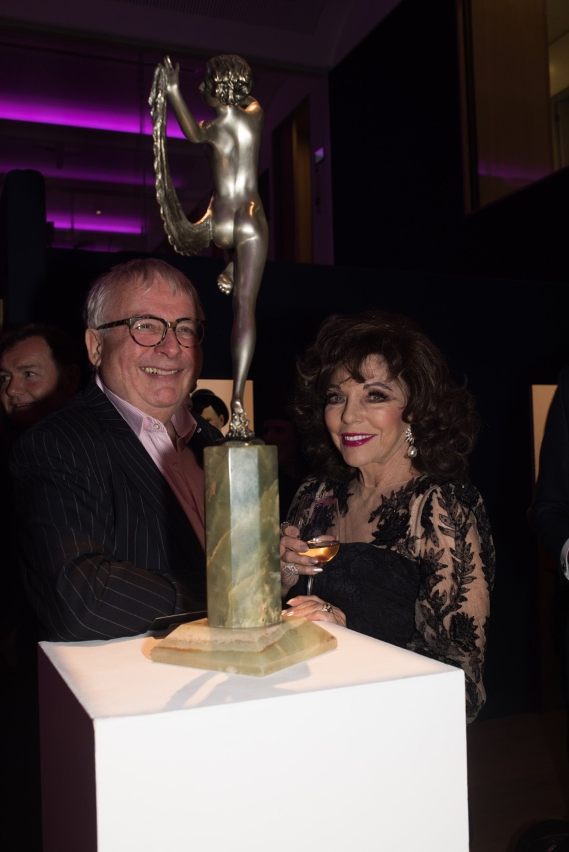 A few streets away from this heart-warming display of institutional unity, more familial relationships were being aired in a touching display of sisterly affection at Bonhams. Here, the perennially youthful Joan Collins was very much in evidence to support the 1000-lot sale from the estate of her late sister, the author Jackie Collins who died from breast cancer in 2015. The possessions of the Beverley Hills-based pioneer of the high octane “bonkbuster” novel (she wrote 32), were the epitome of Hollywood glitz. There was an abundance of art deco statuettes along with some questionable paintings of stars of the silver screen, but which also demonstrated an endearingly down-home fondness for the gently bawdy works of folksy British painter Beryl Cook. However, it was the jewellery that really stole the show. Guests, including the comedian Julian Clary and socialites Nancy Dell’Olio and Tamara Beckwith, were drawn like moths to a dazzling array of diamonds and emeralds that would have been the envy of even Jackie’s most aspirational of heroines. Joan, however, was discretely wearing her own.