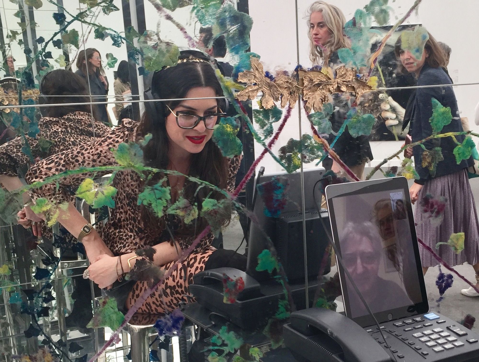 On the Athens-based Breeder gallery’s stand is a mirrored installation by the artist Chrysanne Stathacos, originally presented at Andrea Rosen Gallery. Called 1-900 Mirror Mirror (1993) and priced at $45,000, the work requires viewers to sit in a metal seat to see their faces reflected infinitely by the mirrored walls. After picking up a then-cutting-edge but now-outdated videophone, they are asked: “Do you have a question for the future?”, and are then given a tarot-card reading. The installation, which was still available to buy on Friday, forces people to consider their fate and mortality. Readings will be held every day during the final two hours of the fair.