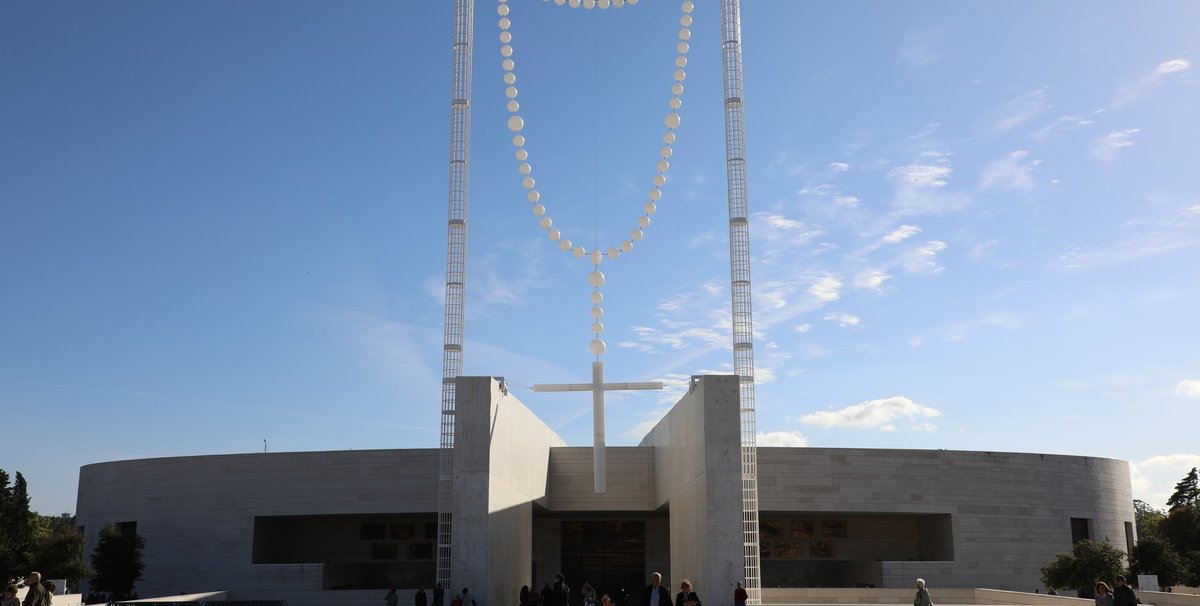 A giant glow-in-the-dark rosary by the Portuguese artist Joana Vasconcelos has been erected at the pilgrimage site of Fátima in Portugal, and will be illuminated for the first time when Pope Francis visits on Friday (12 May). The work, titled Suspensão (suspension), is 26 metres tall and brings to mind the plastic glow-in-the-dark trinkets that overflow out of the many tourist shops surrounding the site. It is suspended above the entrance to the Basilica of the Holy Trinity, one of several churches built at the Sanctuary of Fátima. The work was commissioned to commemorate the centenary of an apparition of the Virgin Mary to three shepherd children tending sheep, that was said to have taken place at the site in 1917. Pope Francis is to make a two-day pilgrimage to Fátima this week, including a recitation of the rosary on Friday when Vasconcelos's work will be lit up.
