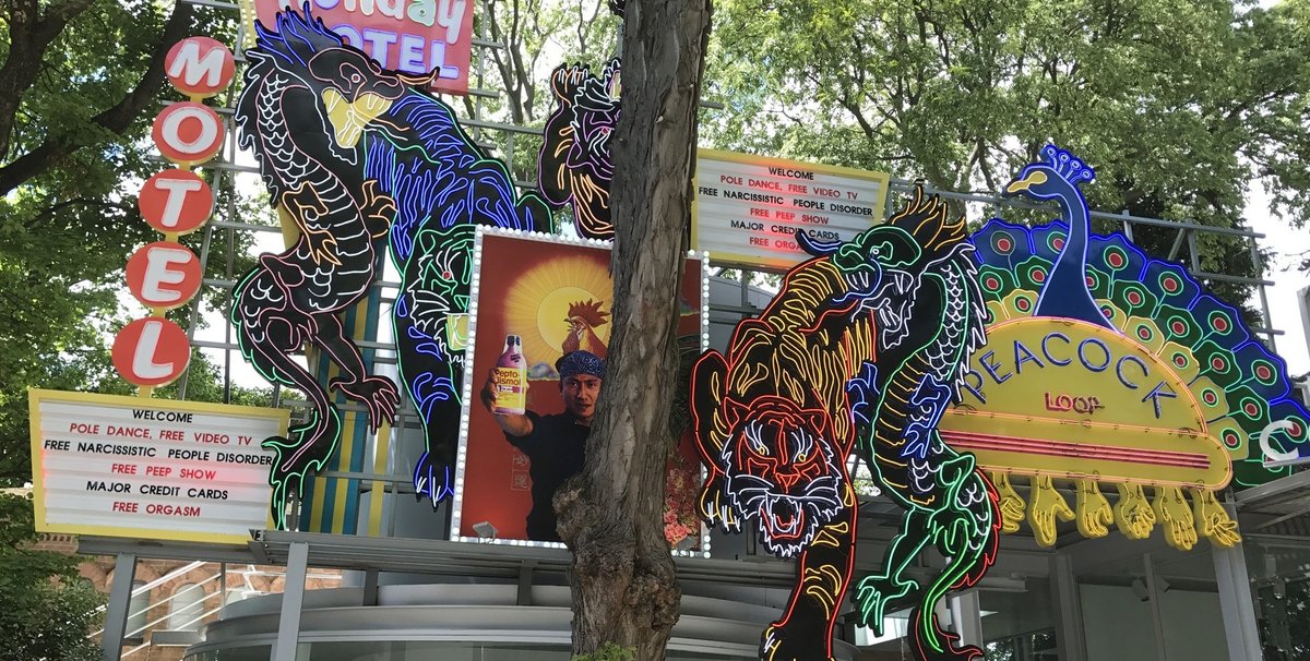 Peep shows and free orgasms are on offer at the Korean pavilion courtesy of Cody Choi who is advertising these dubious treats on the façade of the Giardini building as part of his Las Vegas-style work Venetian Rhapsody (2017). Choi has said that Venice is no different from other tourist hot spots such as Las Vegas and Macau, highlighting the “power and capital” of La Serenissima. His bright pink re-make of Rodin’s The Thinker, crafted from toilet paper, is a startling art historical re-configuration (The Thinker, 1995-6). Lee Wan’s Proper Time installation (2017) comprising 600 clocks soberly charts how long individuals worldwide must work in order to purchase a meal.
