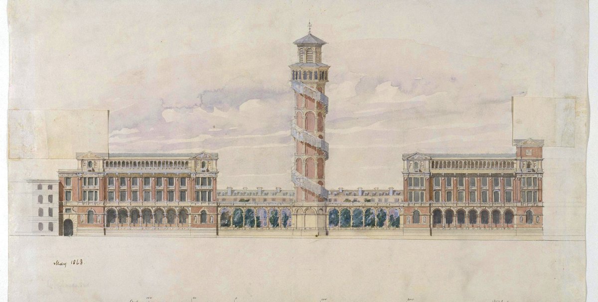 Cole’s watercolour plan is on show at the museum as part of a special display tracing the history of its buildings from the 1850s to the present (Designing the V&A, until 31 December). The image also appears in an accompanying book by Julius Bryant, the museum’s keeper of Word & Image. Bryant describes Cole’s tower as “either clever marketing or a museum director’s folie de grandeur”.