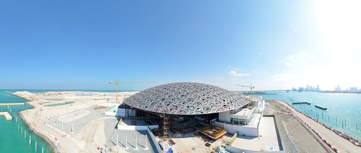 Most of the construction work has been completed and a number of technical issues that arose—including the placement of the mesh-like 12,000-tonne, 180-metre-diameter cupola and sealing the building from the seawater the fills basins surrounding it—have been solved. Three thousand workers continue to labour round the clock to put the finishing touches on the building designed by the Pritzker Prize-winning architect Jean Nouvel, but the museum has now entered the “preparation phase, that includes testing [the building's stability and security], before art installation”, our sources say.