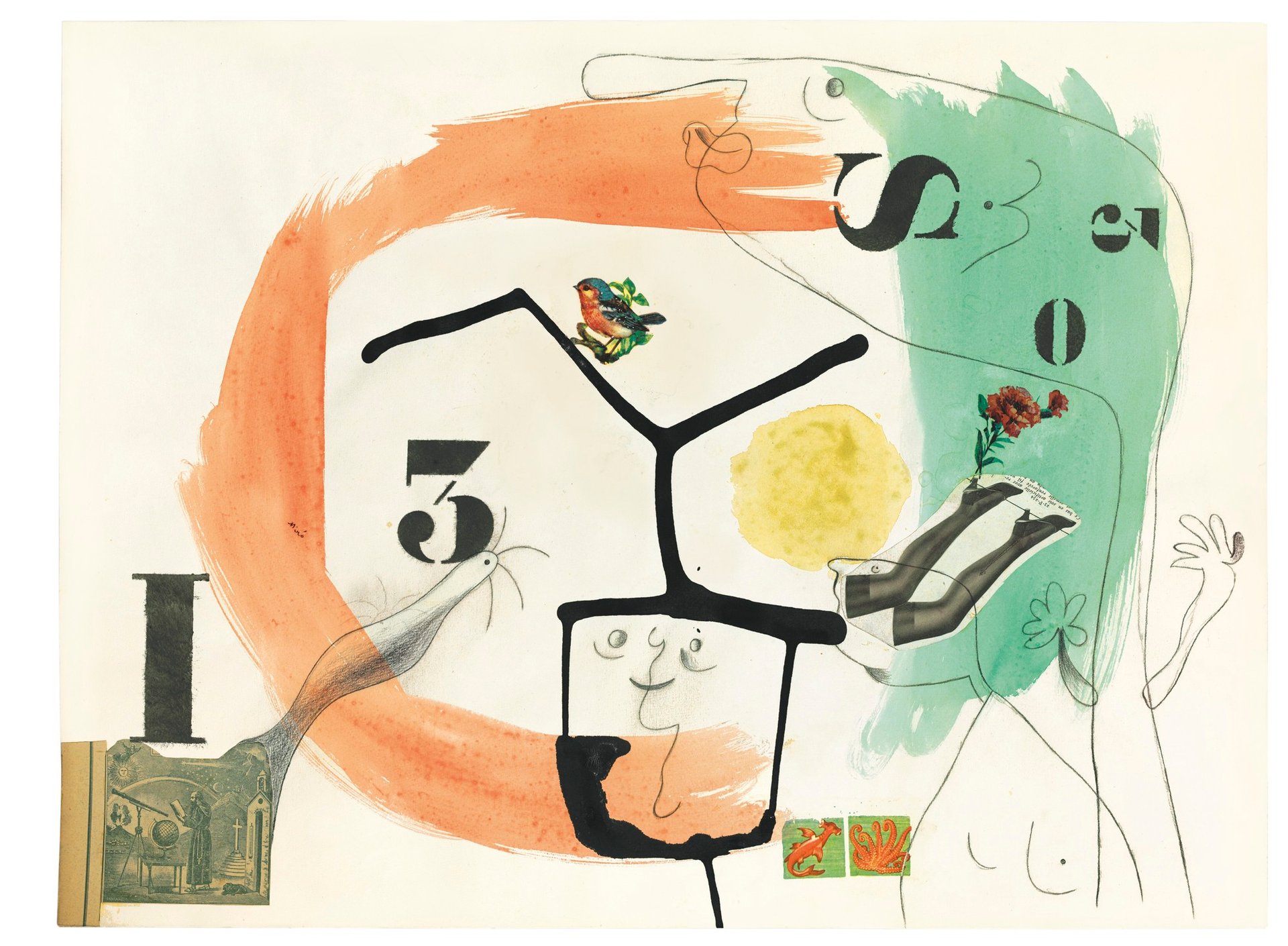 This collage-drawing, made up of watercolour, cut paper, decals, India ink and charcoal on paper, is from a series that the Spanish artist created from clippings of children’s books and kitschy postcards and advertisements. In this work, which dates from a hinge period in Miró’s practice between representation and abstraction, the artist “juxtaposes bold splashes of watercolour with precisely rendered personages and stencilled numbers and letters to create a whimsical, surreal environment”, says Vanessa Fusco, a specialist in the house’s Impressionist and Modern Art department. Offered at auction for the first time, the work was first owned by Miró’s primary American dealer, Pierre Matisse (the son of the artist Henri Matisse), who passed the work down to his son, Pierre-Noël Matisse, whose wife, Jacqueline Miller Matisse, is selling the work. In a market cluttered with Miró fakes, “its fresh provenance is particularly desirable”, adds Fusco.