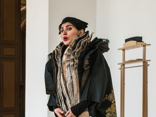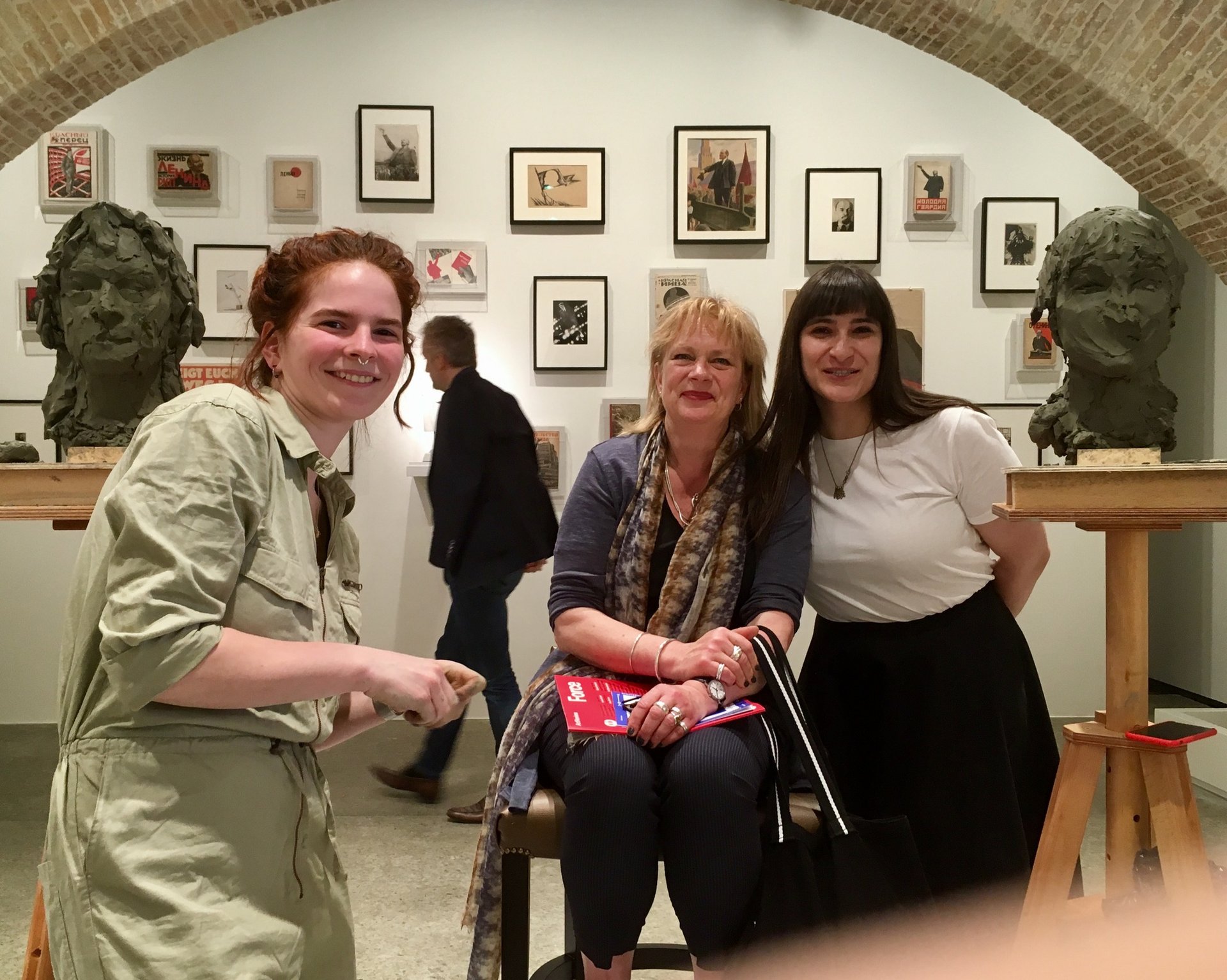 Your correspondent was very happy take part in this trenchant institutional critique and was especially thrilled when her own clay portrait image was made to merge with that of another participating Biennale and V-A-C artist Taus Makhacheva. The Russian-Dagestani artist is not only showing her toe-curling film of a tightrope walker carrying artworks between two mountains in the Caucasus in the Biennale’s Central Pavilion, but is also contributing her own performative work to the V-A-C’s Space/Force/Construction show. This involves her dispensing carrots wrapped in a poem by Mayakovsky, as well as lollipops in shape of Lenin’s head, accompanied by a loudspeaker broadcasting ominous sounds of rumbling stomachs. So far, so absurdist, until you learn the sobering subtext that it refers to Stalin’s starvation of millions in the Ukraine and Makhacheva’s native Caucasus.
