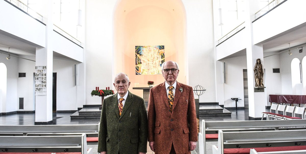 The British art duo Gilbert & George were not initially convinced it was a good idea to show their work in a church. They are generally anti-religion. But, as George points out, “faith in the church is out there” and to deny its existence would be futile.