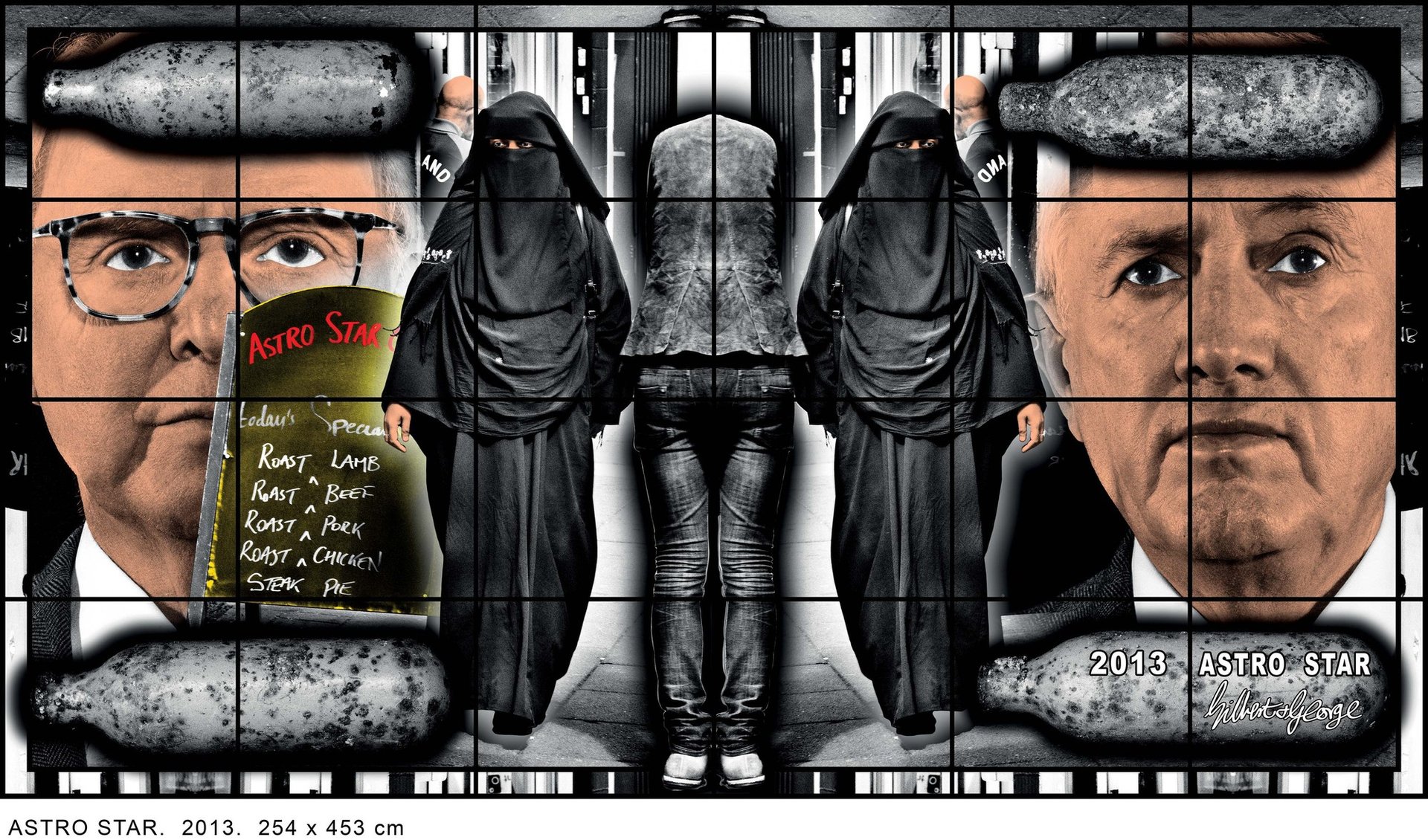 For Gilbert & George, dressed in tweed suits for the opening press conference, the dominant issue of our era is the clash between Islamic and Western cultures. “It’s not going to go away in a lifetime,” George says, adding that the pair “feel very privileged that we live in the turmoil”.