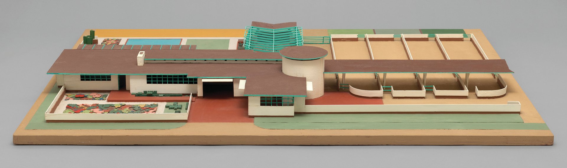 Wright’s was a massive and very particular presence, yet he did not walk alone. In the exhibition, this is well expressed by the model and drawings of Broadacre City—“architecture + acreage” according to Wright’s equation—a project begun in the early 1930s proposing a kind of low-density garden city, a riposte to New York and Chicago shaped by a host of young architects. The presentation of this unrealised suburban utopia, even if you disagree with the anti-city philosophy underpinning it, remains as exciting as it was when first exhibited in the Rockefeller Center, New York, in April 1935.
