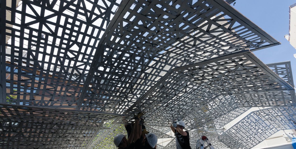 The British-born, Pritzker prize winning architect, Norman Foster, opens his archive and an international research centre on Thursday, 1 June, housed in a palatial building in Madrid. The new Spanish headquarters of the Norman Foster Foundation is a historic building that has been restored and expanded by the architect. He has designed a glass and steel “pavilion of inspiration” in the courtyard, leading to a basement filled with his archive, library plus photography and slide collection. The sleek new structure is shaded by sculptural canopy created by the Spanish artist Cristina Iglesias in collaboration with the architect.
