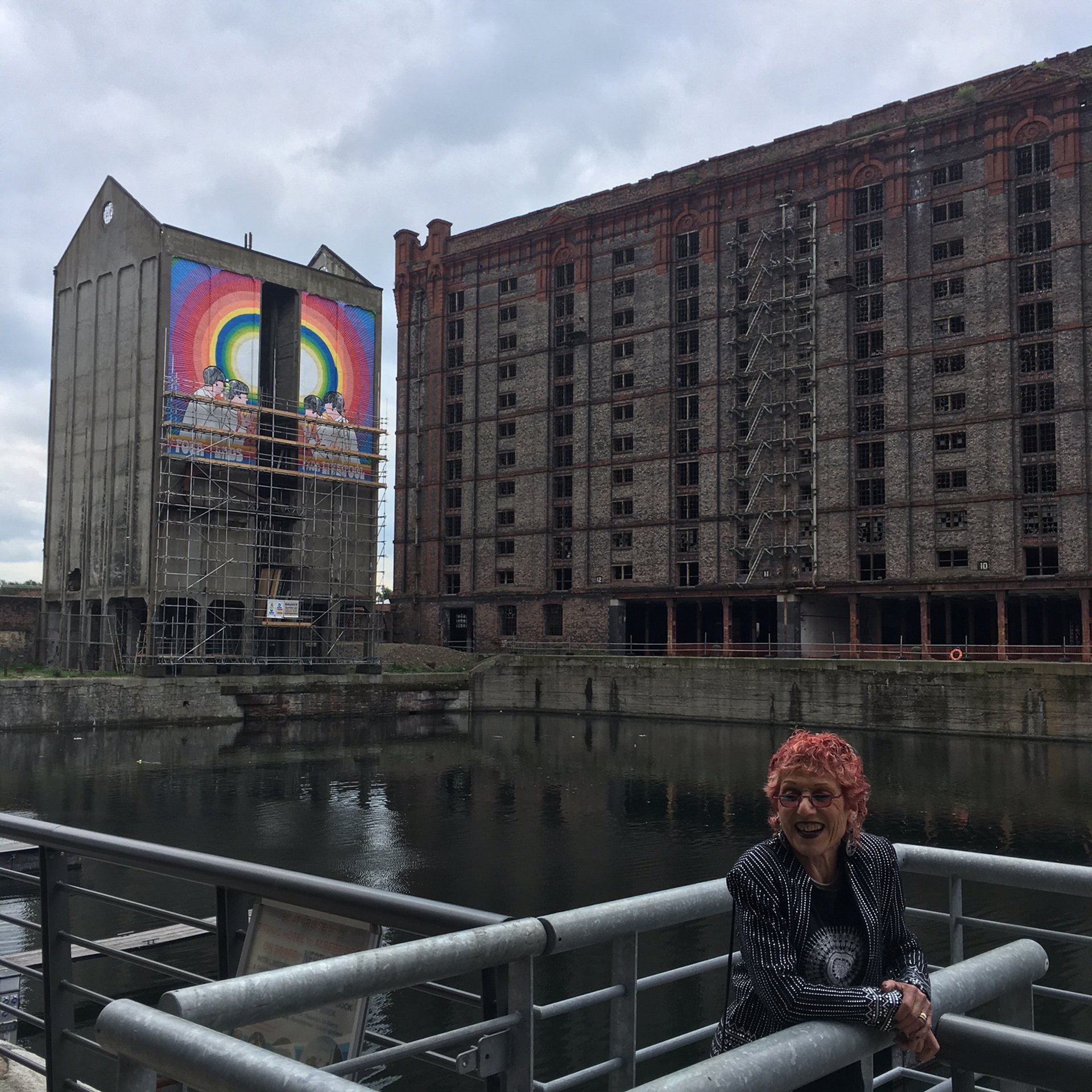 The mural, titled Four Lads from Liverpool (2017), was still being completed today on the side of an old grain silo at the edge of one of the city’s former docks. Standing outside the hotel she is staying at across the water, and using a telephoto lens, Chicago gave instructions to Gary Jones, a former sign painter, via mobile telephone: “The shading on the head of Ringo looks really good!”